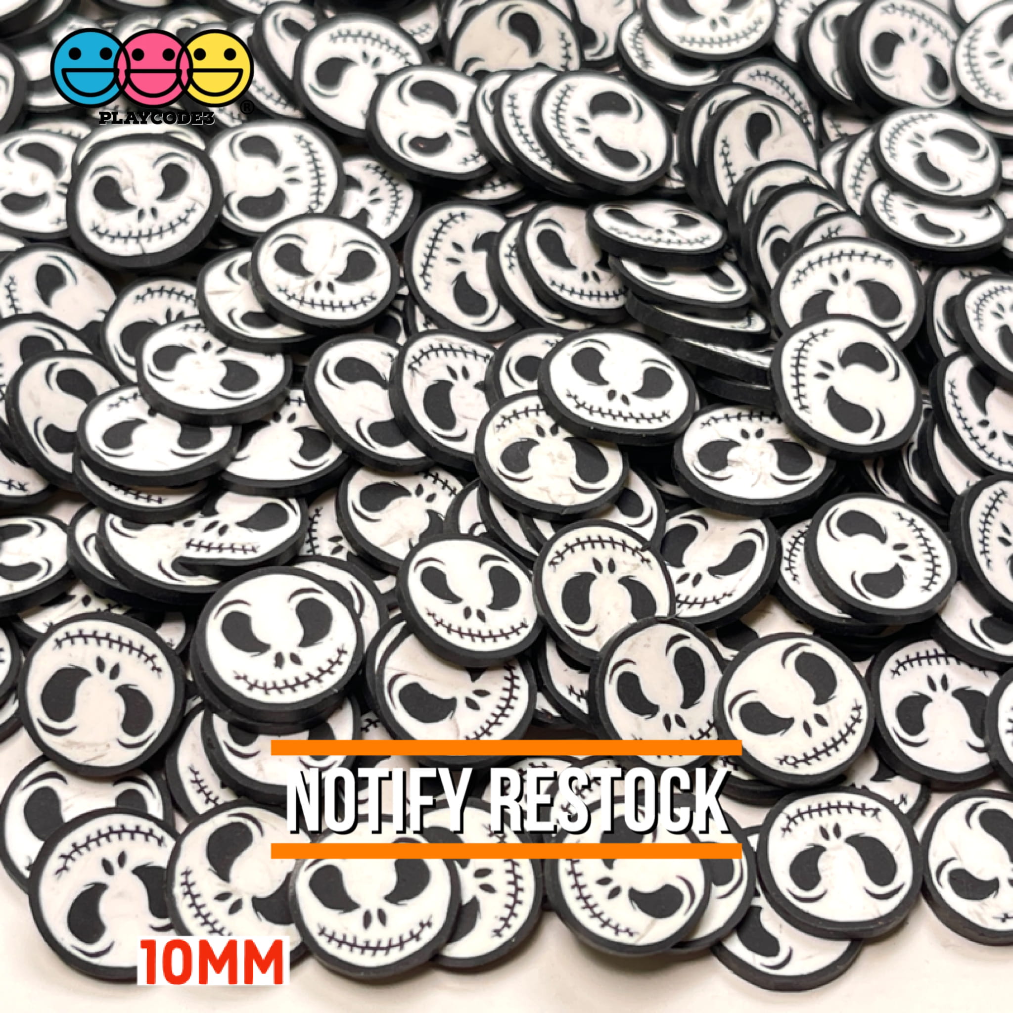 Skull Face Black White Skeleton Jack Skellington Fimo Slices Polymer Clay Fake Sprinkles Halloween 10/5mm