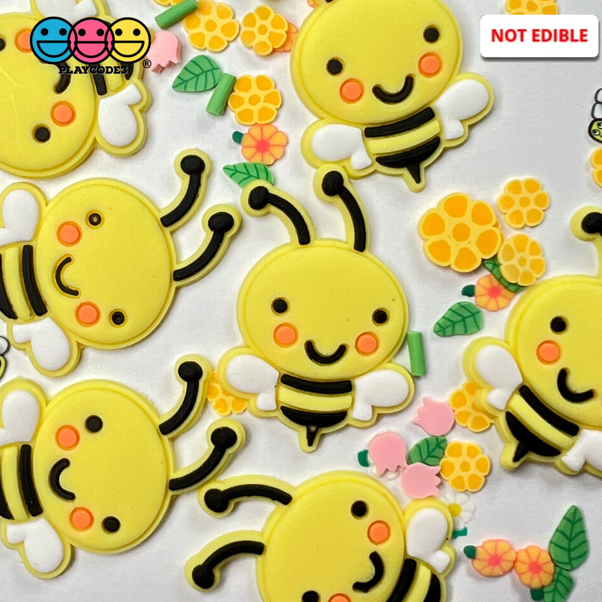 Bees Soft BENDABLE Flatback Charms Kawaii Cabochons Flowers Bees 10pcs