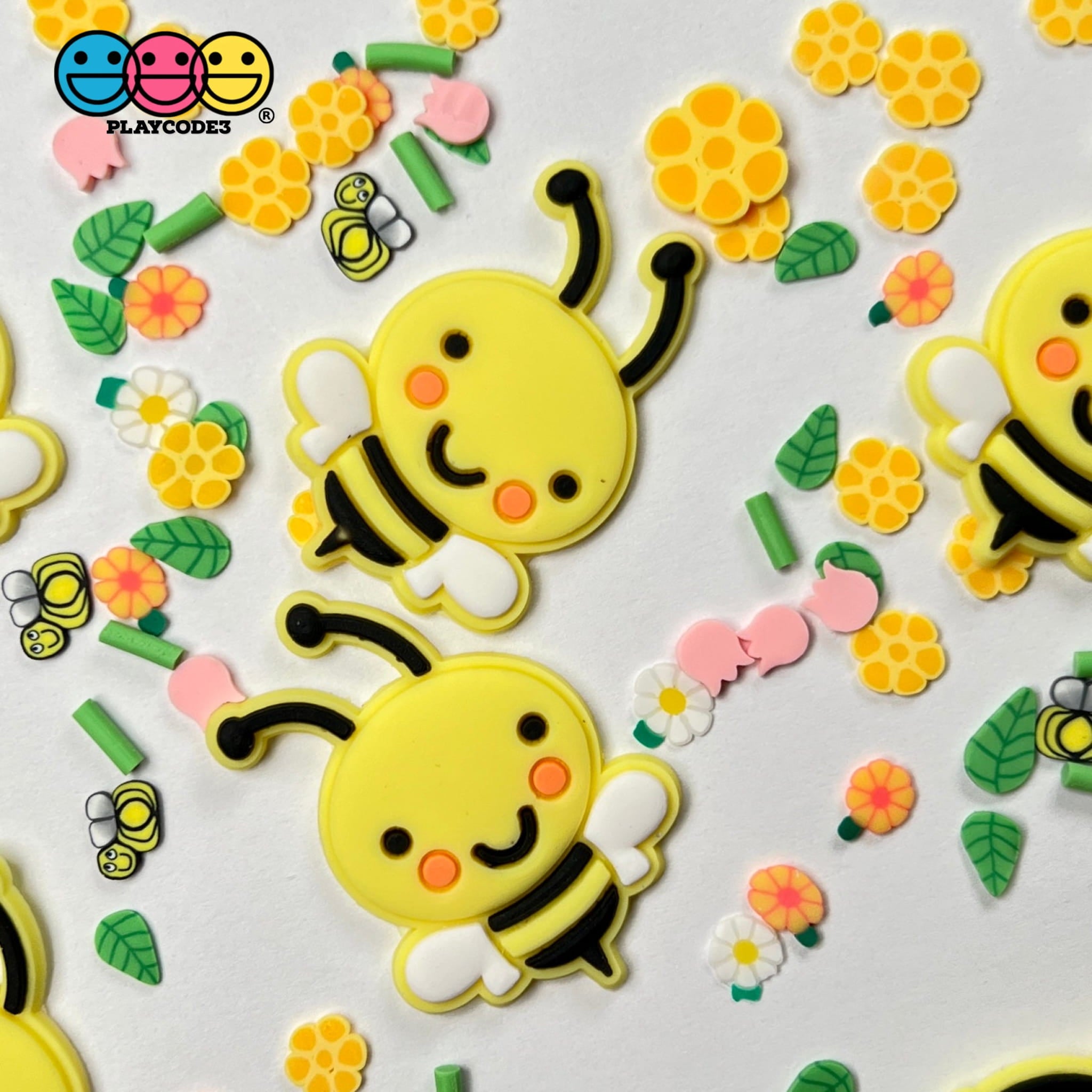 These are cute soft bendable Bee Flatback Charms Kawaii (10 pieces in bag) Truly a classic charm for slime, fake bake, headbands, hairbow, scrapbooking etc.! Bee excited about these LOL! We love these little charms so much and you and your creations will love them too!