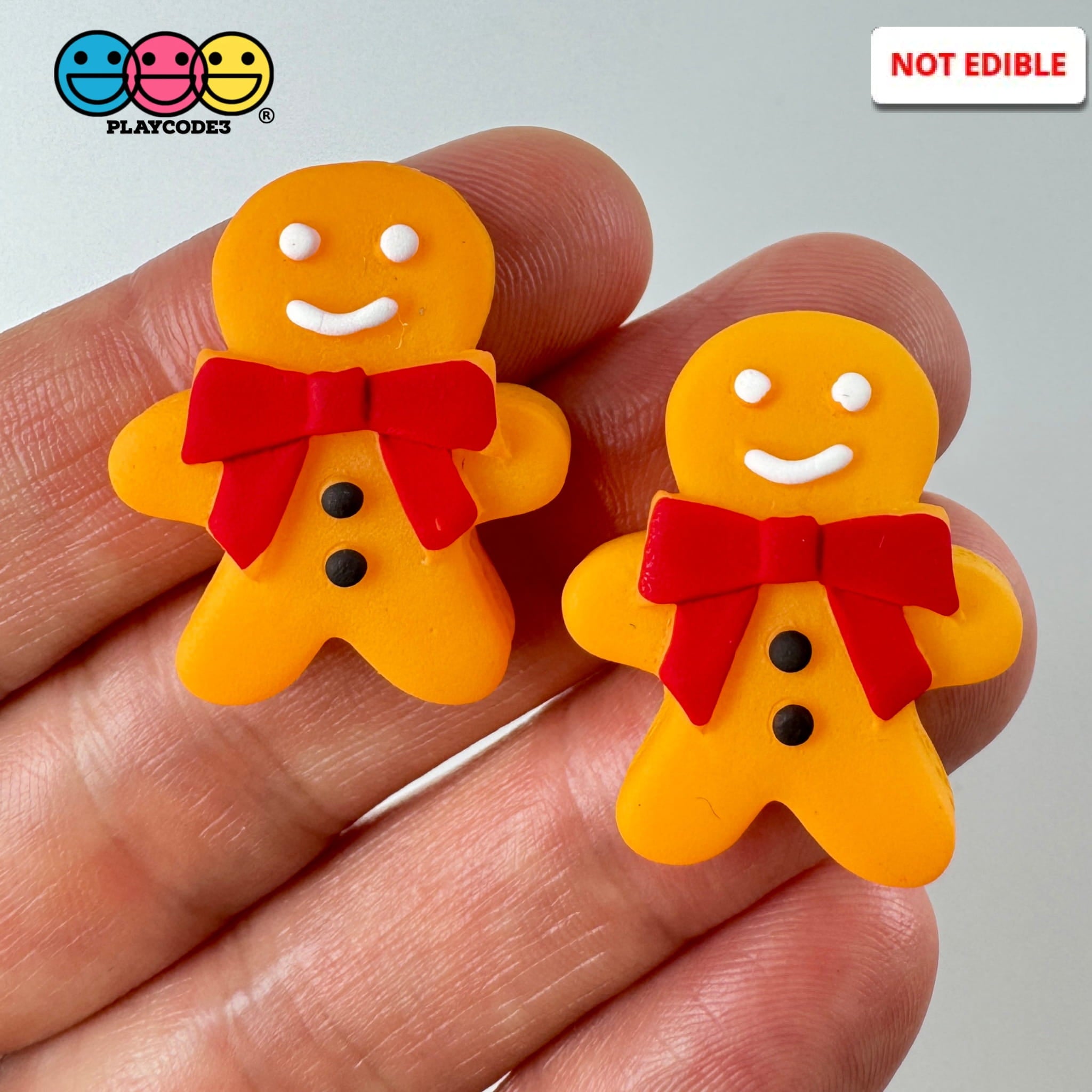 Christmas Gingerbread Man Red Bow Holiday Flatback Cabochons Decoden Charm 10 Pcs Playcode3 Llc