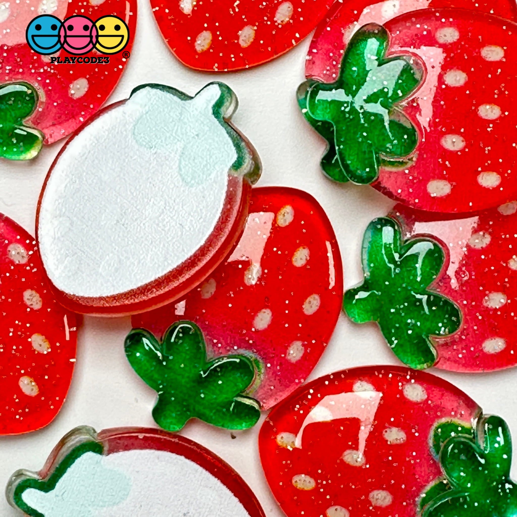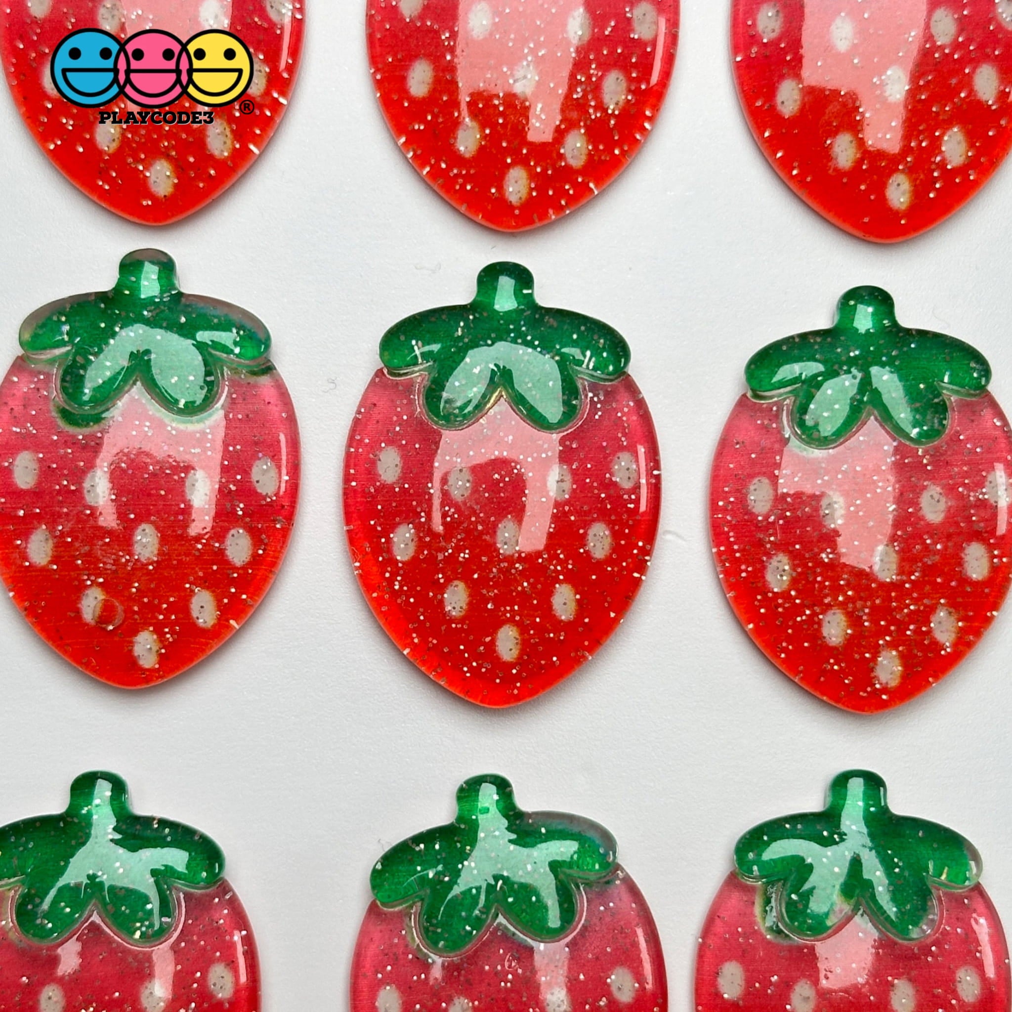 Fake Strawberry Glitter Fruit Summer Flatback Cabochons Decoden Charm 10 Pcs Playcode3 Llc