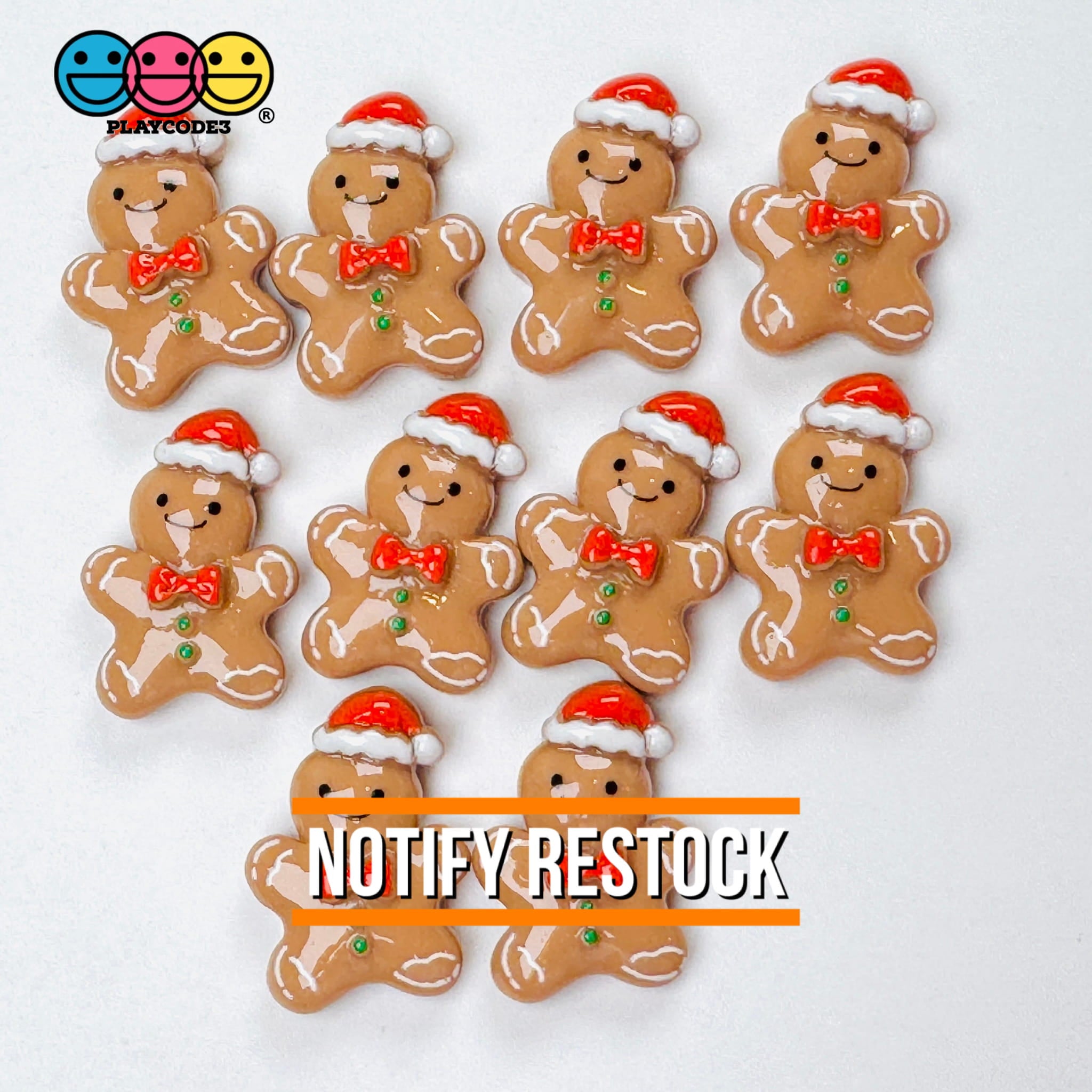 Gingerbread Man With Santa Hat Christmas Holiday Flatback Cabochons Decoden Charm 10 Pcs Playcode3