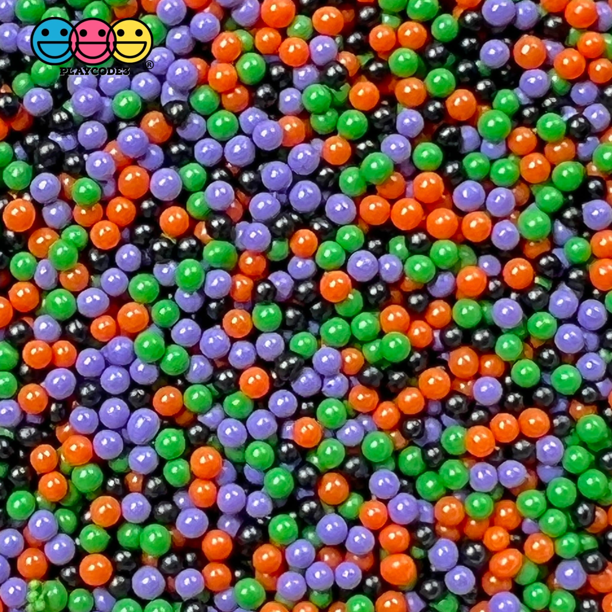 These are Fake (not-edible) Halloween Mix Nonpareil Glass 1.9mm Beads Caviar Faux Sprinkles Decoden Fake in bag sizes: 20/100 grams 1.9mm beads  This Halloween mix has a mix color of black, orange, green and purple. NOTE: These fake nonpareil beads are made of glass so they are heavier and shine more than acrylic made beads. Nonpareil beads are so versatile in slime and so many other crafting creations such as fake bake cupcakes and candies. You can use them for slime, craft, hair bow decoration, scrapbook, jewelry making etc.