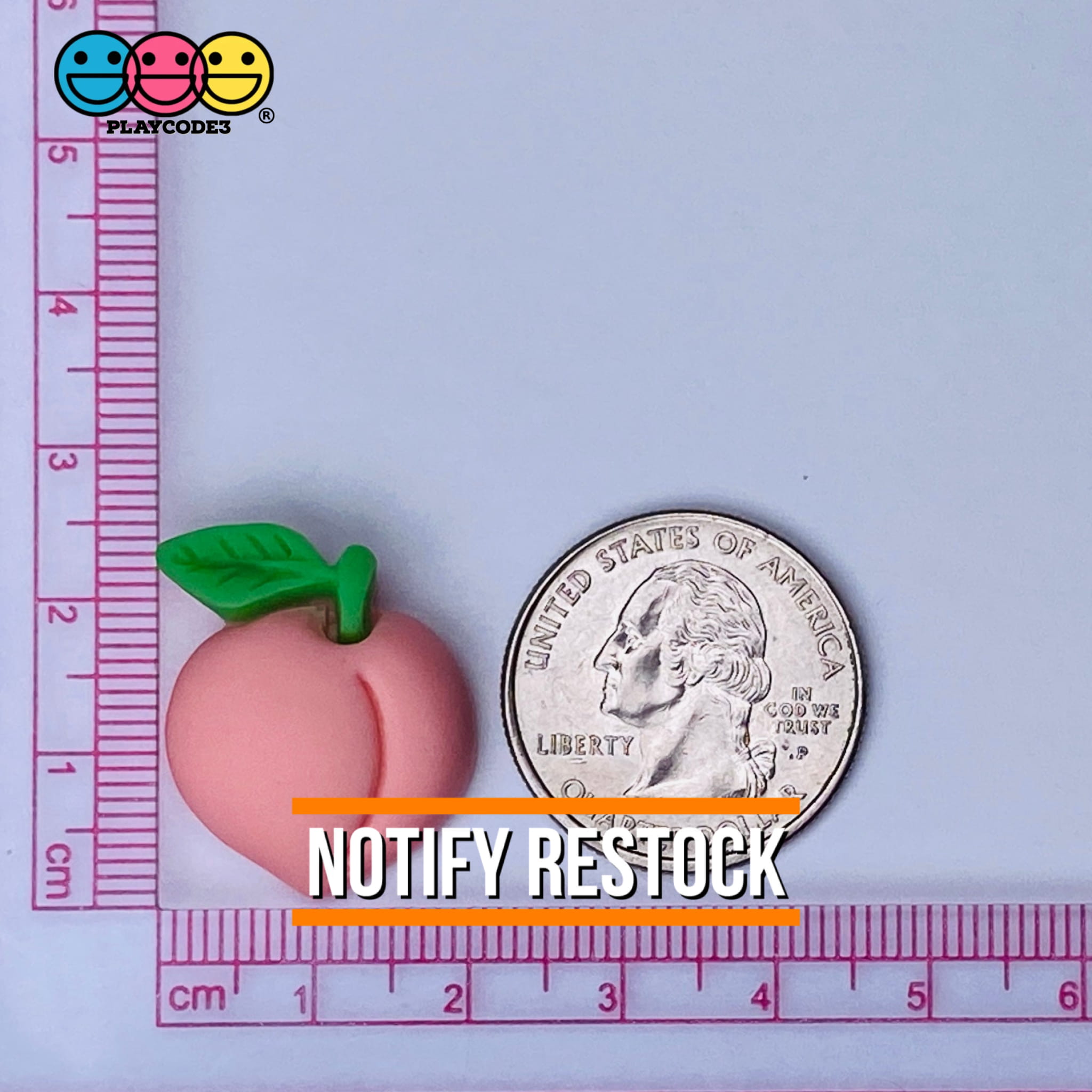 These are Peach Whole Mini Flatback Charm Fake Food Peaches Cabochons Decoden (10 pieces in bag). Peaches are popular, so we have these super cute mini peach flatback charms for you next peach theme creation. These charms have a real nice design to them with a 3D texture of a very cute leaf on top. Get these today to expand your collection of wonderful and classic charms.