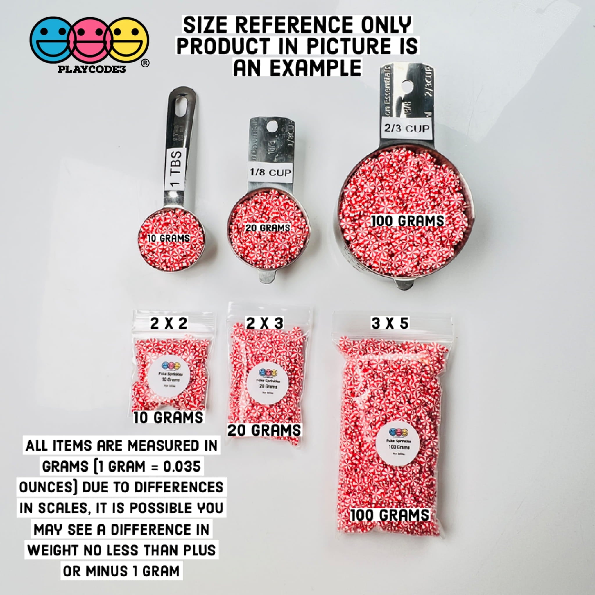 All weighted items are measured during packing in grams (1 gram = 0.035 ounces) using a kitchen-grade scale. We do our best to provide accurate weight measurements of each product. However, due to differences in scales, you may see a difference in weight no less than plus or minus 1 gram margin of difference; please consider this acceptable when weighing our products for accurate measurement.