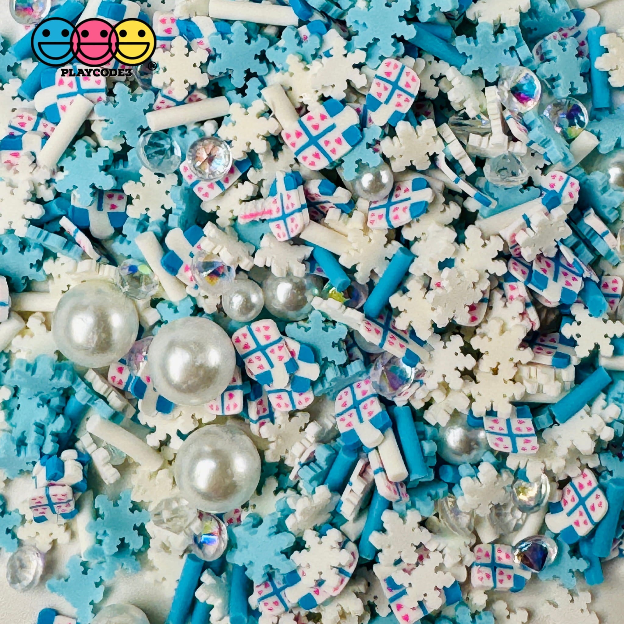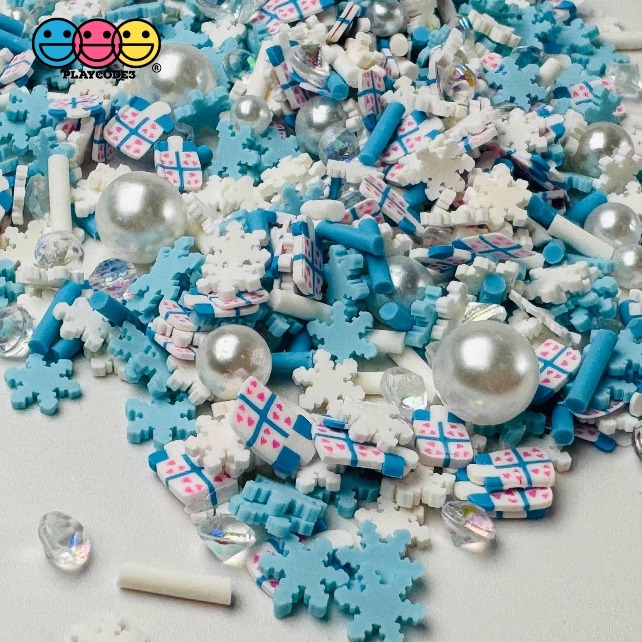 Christmas Holiday Snowflakes Rhinestone Gifts Blue White Confetti Pearl Beads Fake Clay Sprinkles Decoden Fimo Jimmies
