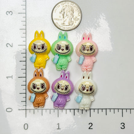 Cute Bunny Monster 6 colors Costume Character Flat-Back Charms 6 pcs