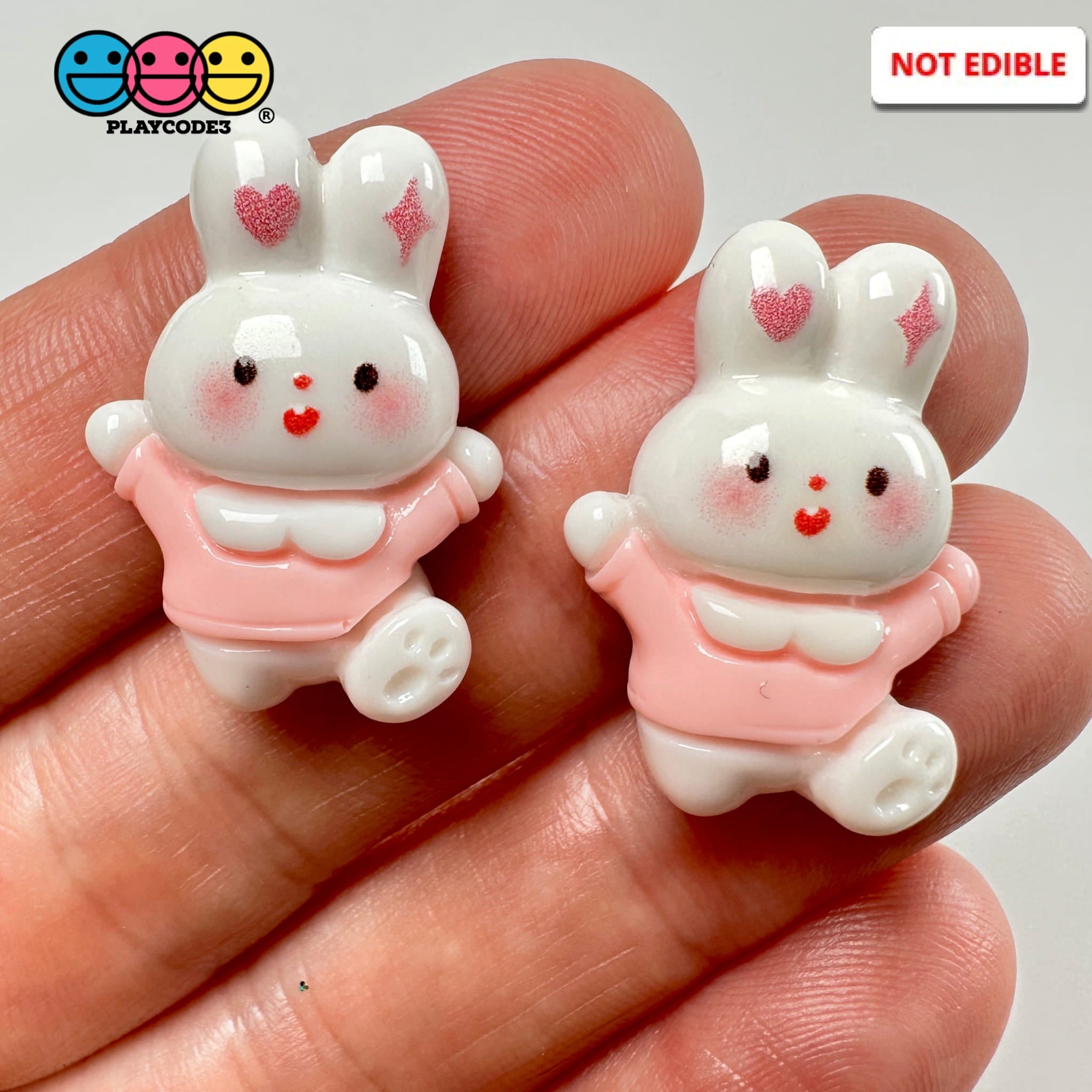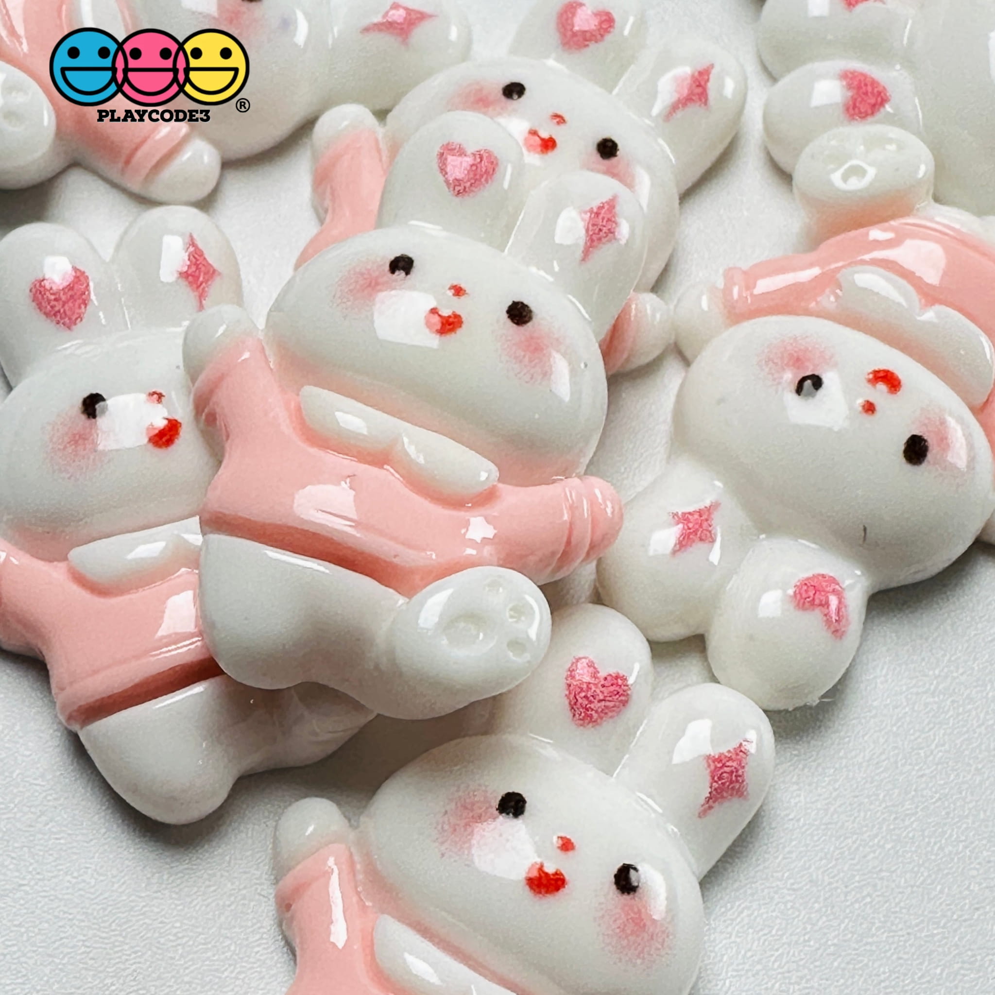 Cute Pink Rabbit Bunny Easter Kawaii Charm Flat Back Cabochons Decoden 10 Pcs