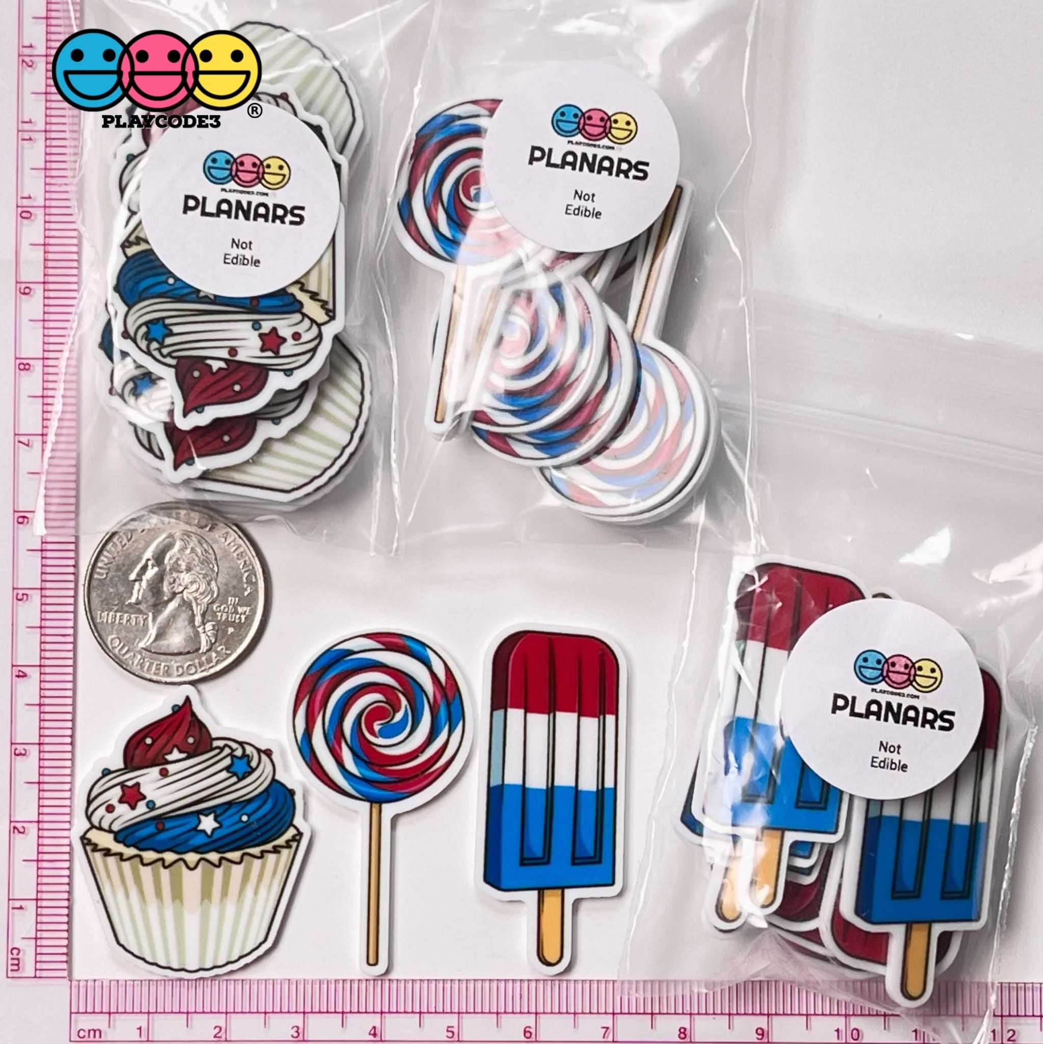 Dessert Theme 4th Of July Planar Patriotic Popsicles Lollipops Cupcakes Decoden 10pcs