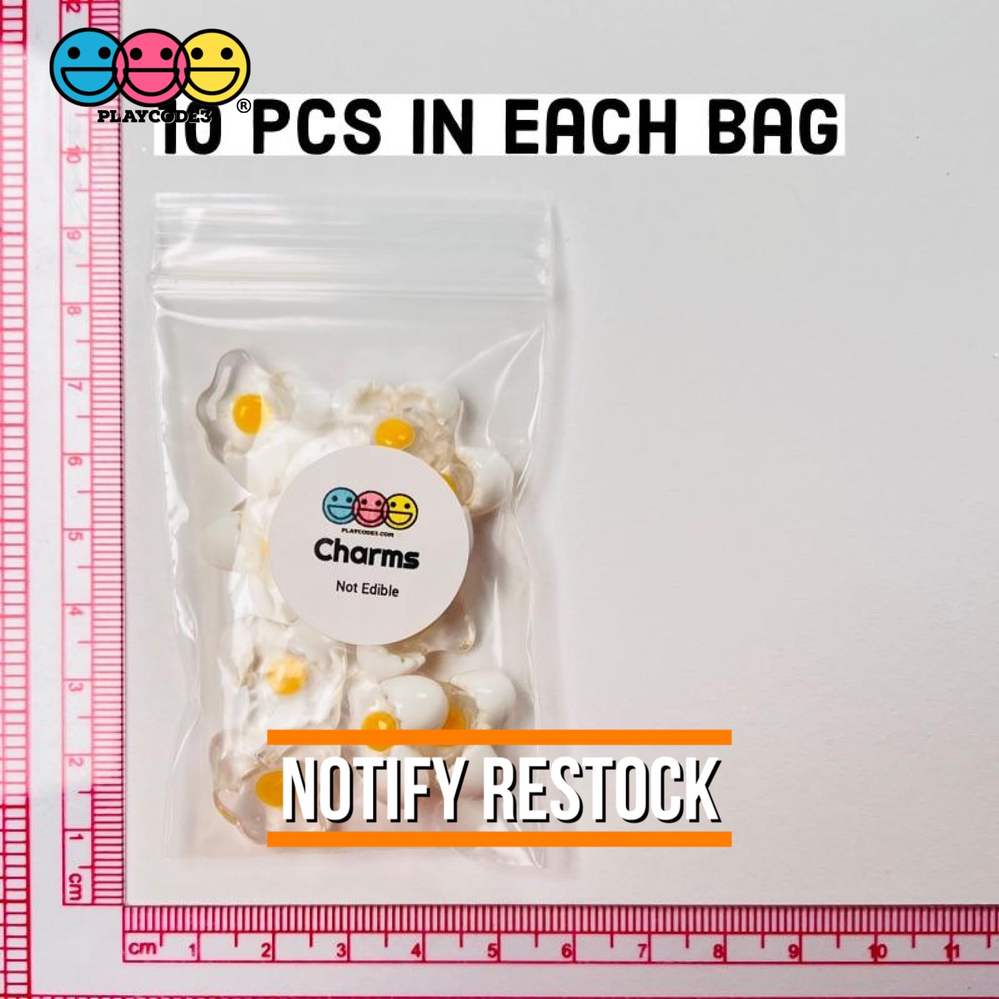 These are Egg Yolk Cracked Eggshells Mini Fake Food Flatback Charms Eggs Cabochons (10 pieces in bag). These egg yolk with cracked egg charms are really special; they look just like a cracked egg with the white and yellow yolk coming out of the cracked egg! This will be great for a dollhouse or any creation that may be breakfast related such as a slime creation or fake bake. Add these wonderful charms to your crafting supply collection today.