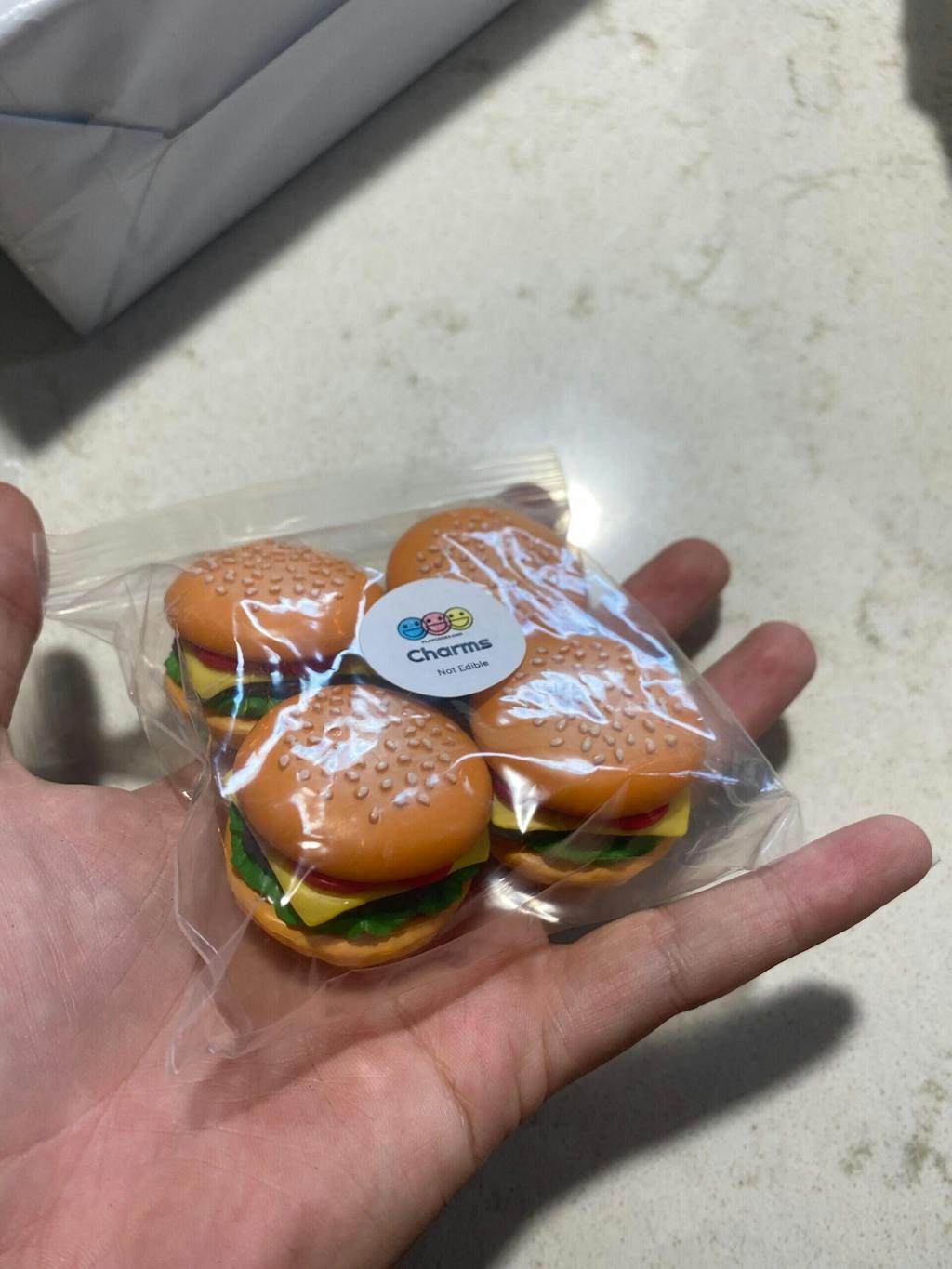 These are 3D Hamburger Charms. There are 4 pcs in the bag. Super Realistic! These are so hard to keep in stock because some many crafters love them! You can use them for slime, craft, hair bow decoration, scrapbook etc.