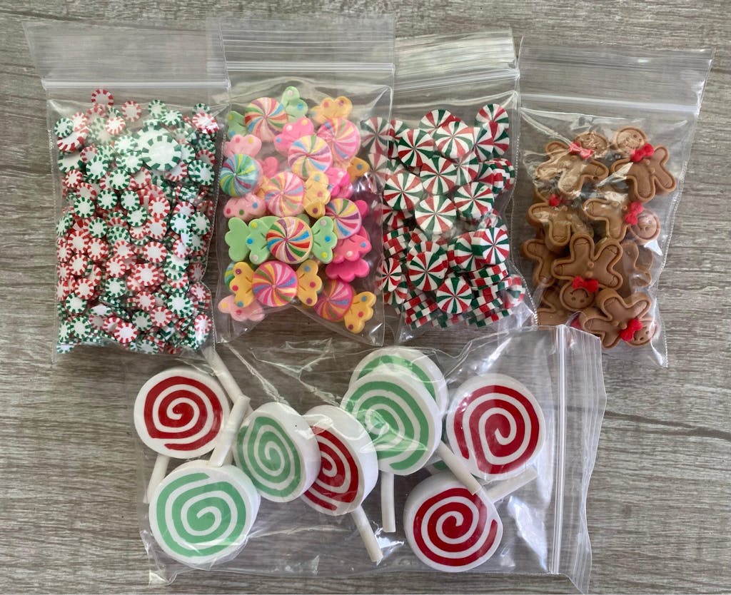 These are Lollipop Swirl Charm Red Green Christmas Charms Lollipops Cabochons (10 pieces in bag). These are nicely made lollipop charms; colors 5 green and 5 red swirls. The lollipop sticks are bendable. These are great for the Christmas Holiday, however you can use them for season, just for a great lollipop theme creation.
