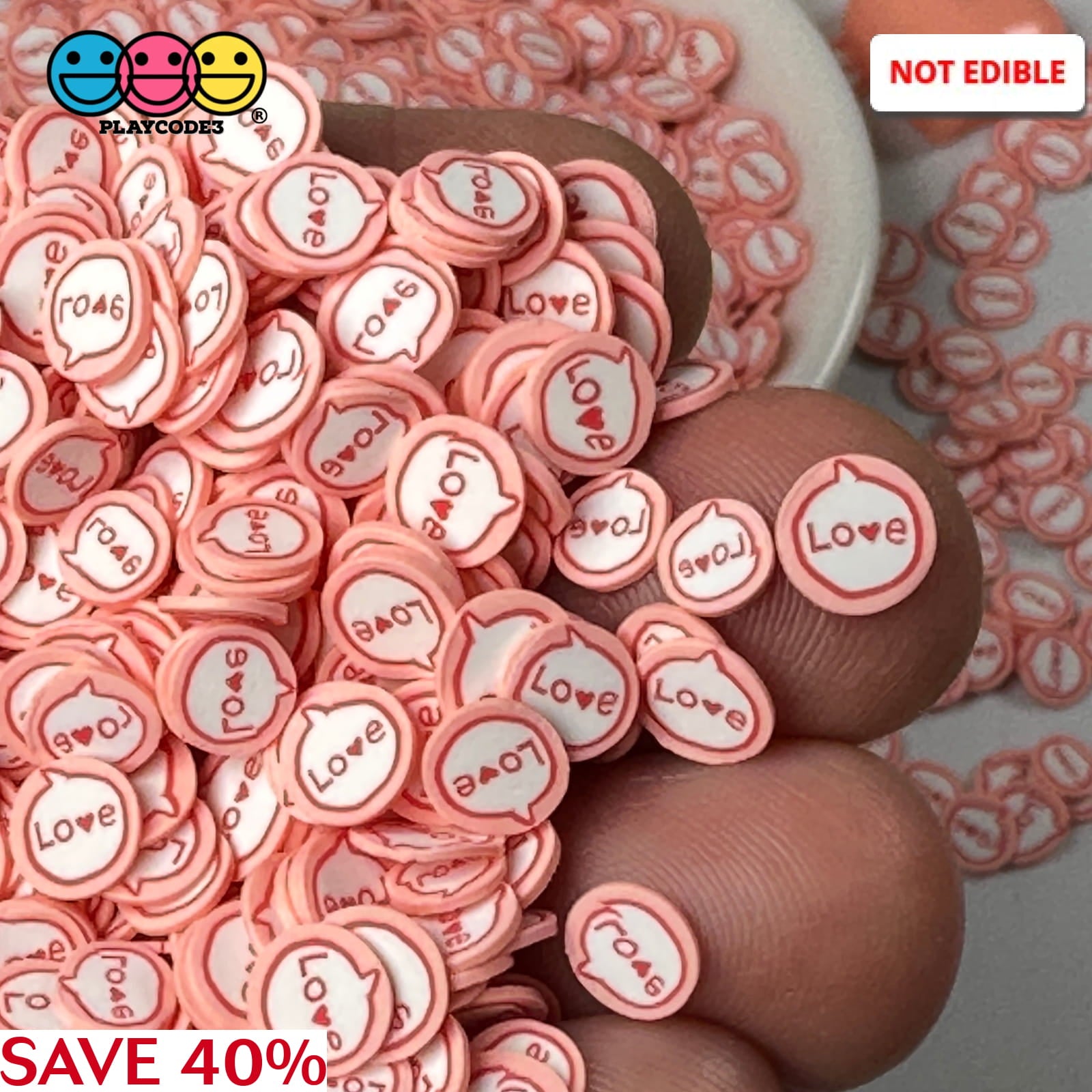 Love Message Bubble Valentines Day Pink Red Heart Fimo Slices Fake Sprinkles Jimmies Playcode3 Llc SALE