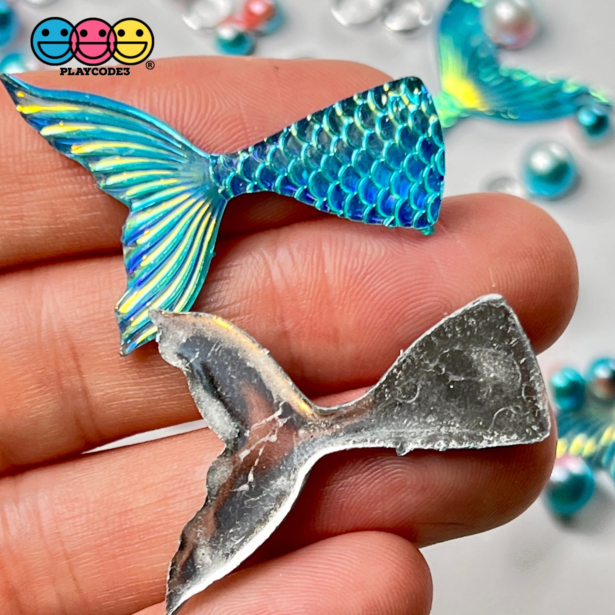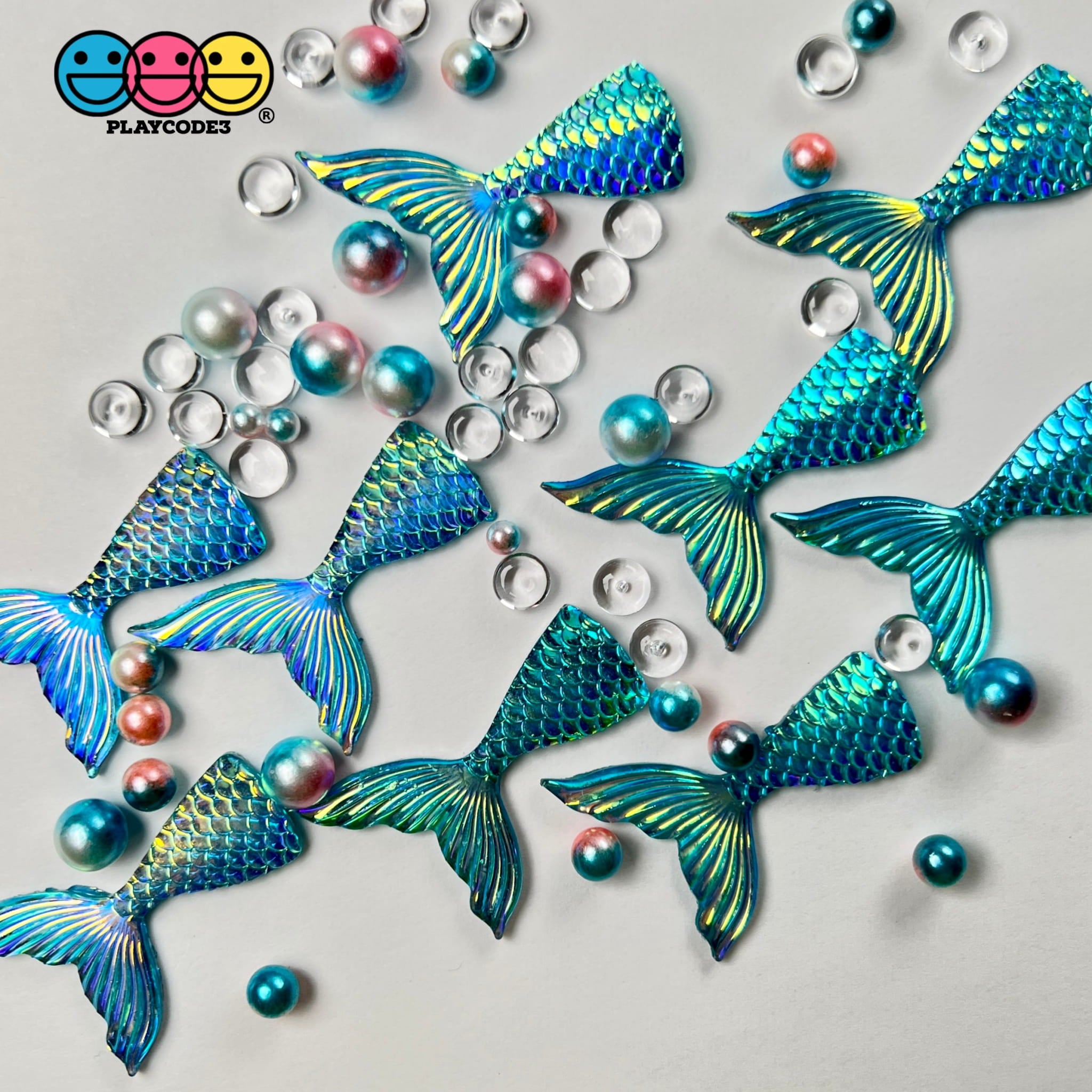 Mermaid Tail Aqua Blue Iridescent Color Shift Flatback Charms Cabochons Fish Decoden 10 pcs