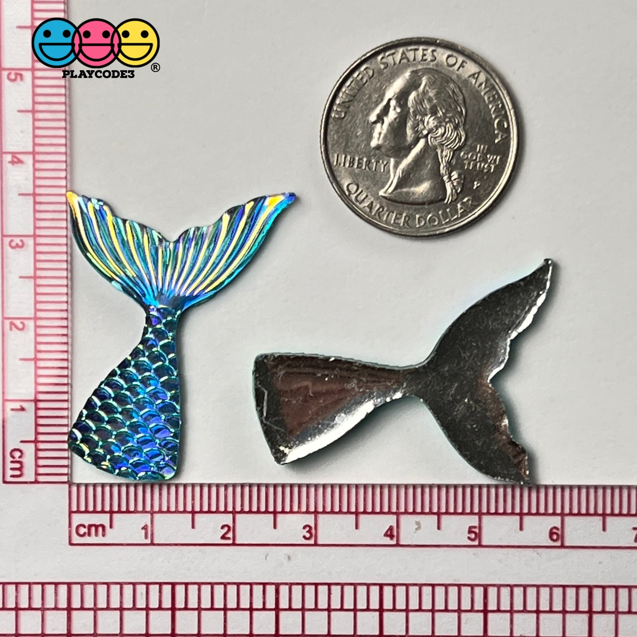 Mermaid Tail Aqua Blue Iridescent Color Shift Flatback Charms Cabochons Fish Decoden 10 Pcs Charm