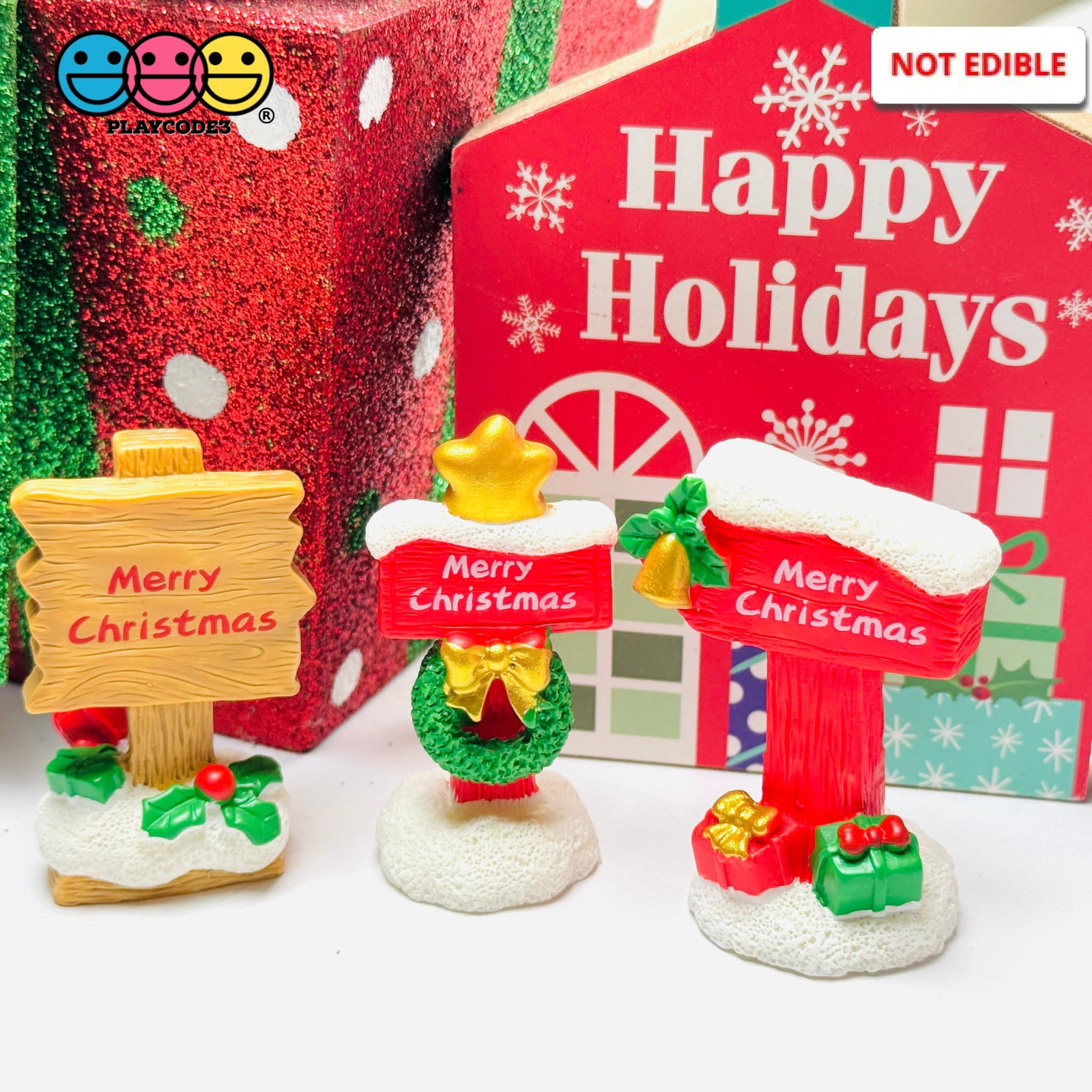 Each set includes beautifully molded signpost cabochons featuring festive elements like holly, stars, bows, and gifts. Perfect for slime, fake bake, holiday crafts, or decorative toppers.