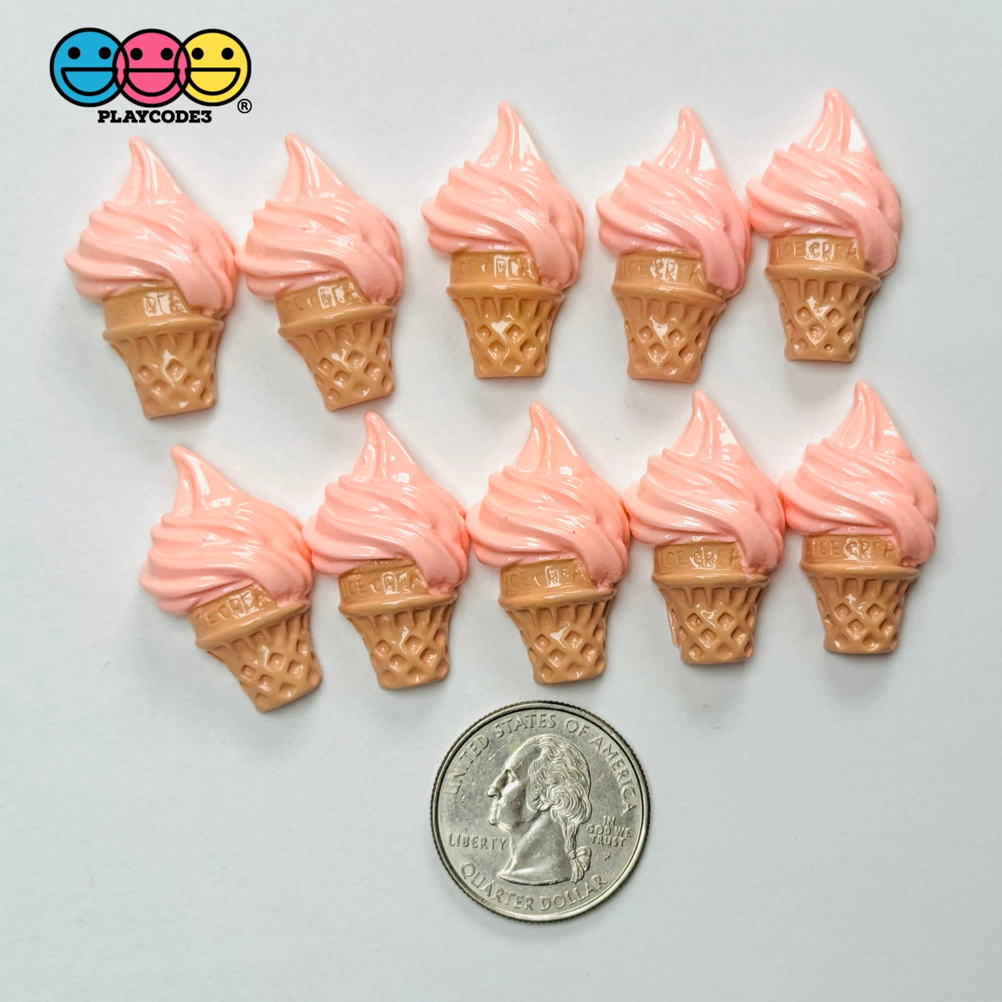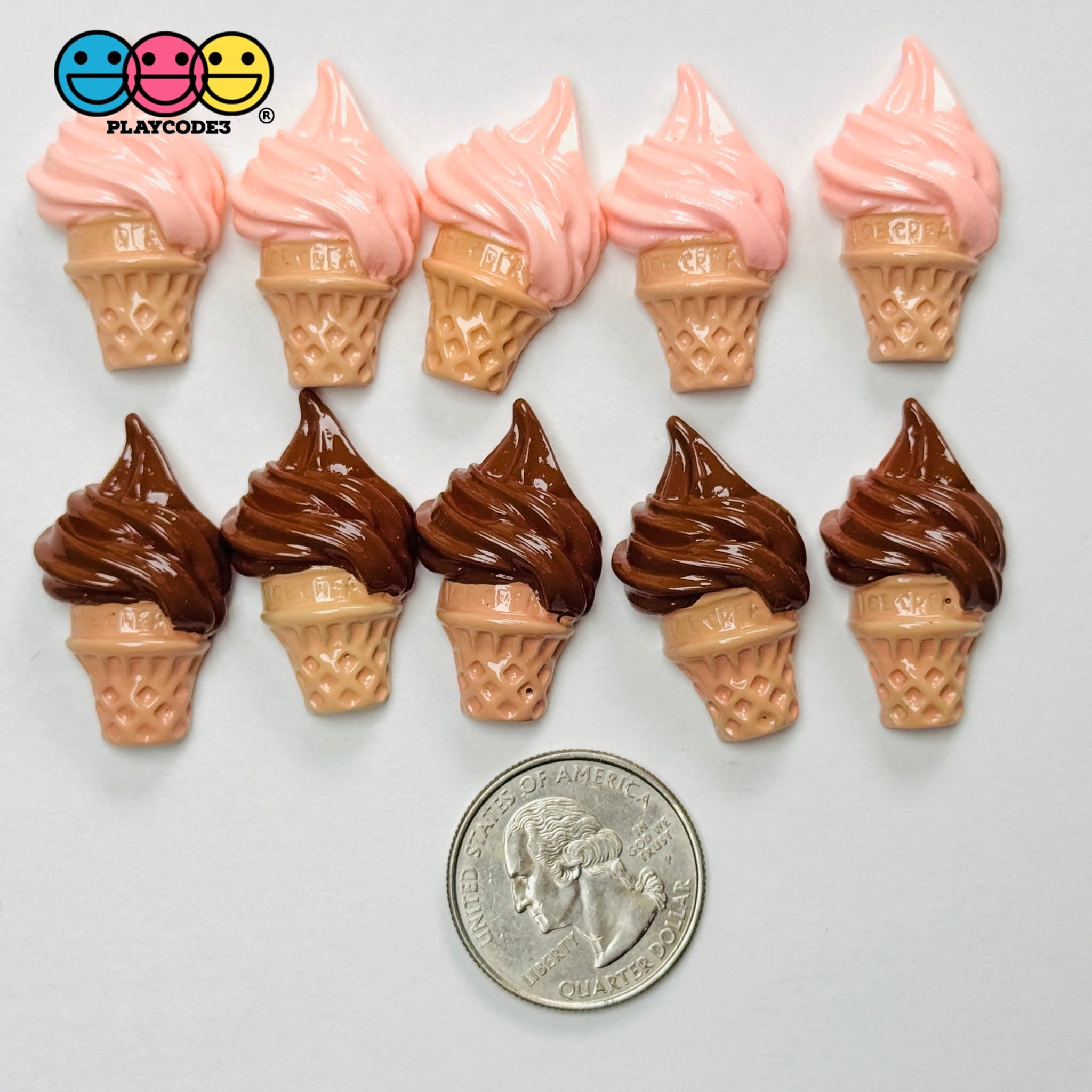 These flatback cabochon charms feature adorable mini ice cream cones in strawberry and chocolate swirl designs. Perfect for crafting, slime toppers, fake bake projects, or adding a sweet touch to accessories and planner decor. Each set includes 10 lightweight charms with a glossy finish.
