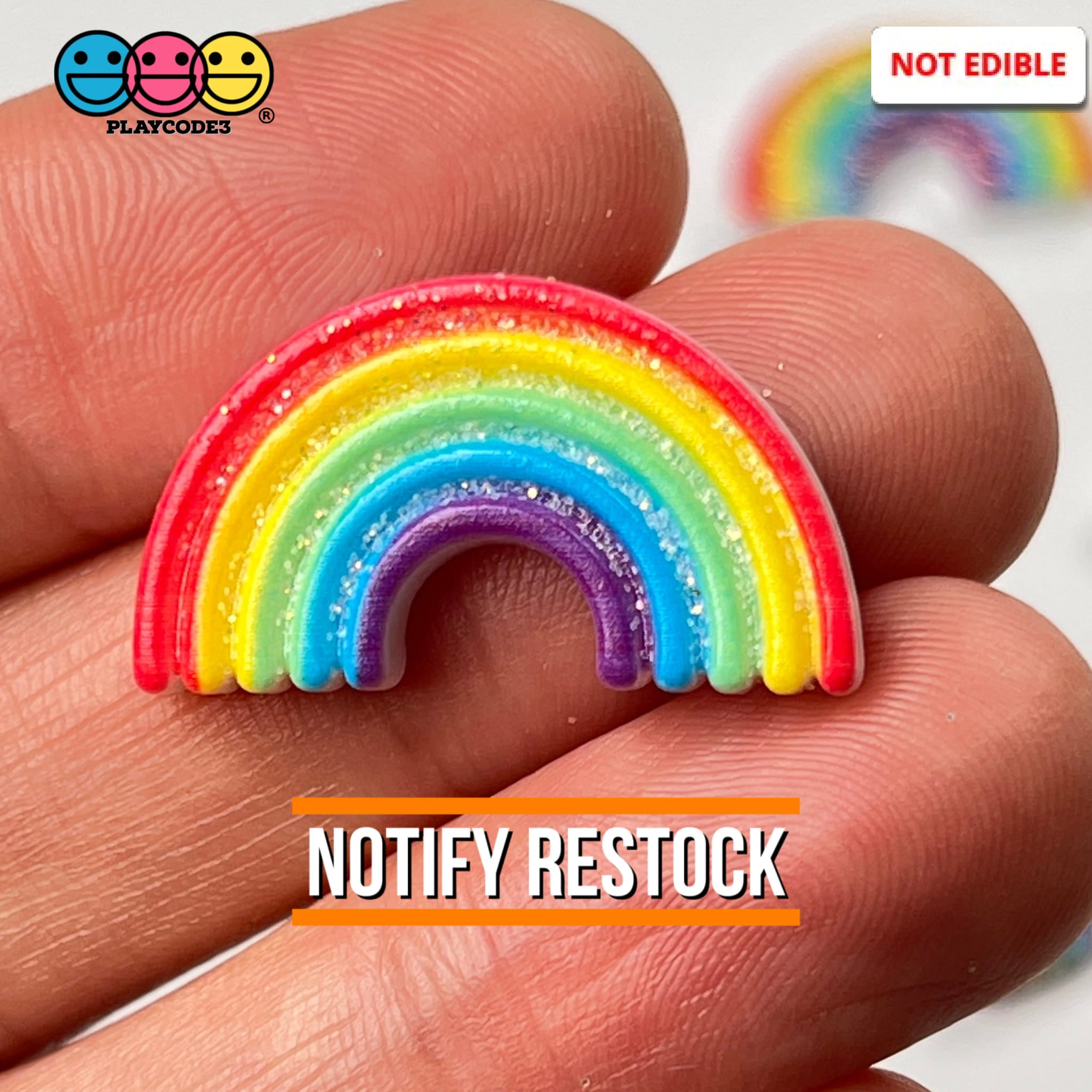 These are Rainbow Glitter Charm Flatback Charms Rainbows Decoden Cabochons  (10 pieces in each bag). Somewhere over the rainbow you will find these very bright nicely topped with glitter rainbow charms! Great for any creation that needs the rainbow touch; perhaps a Unicorn or Saint Patrick's Day theme just to name a few. Add these today to your charm Cabochons collection.