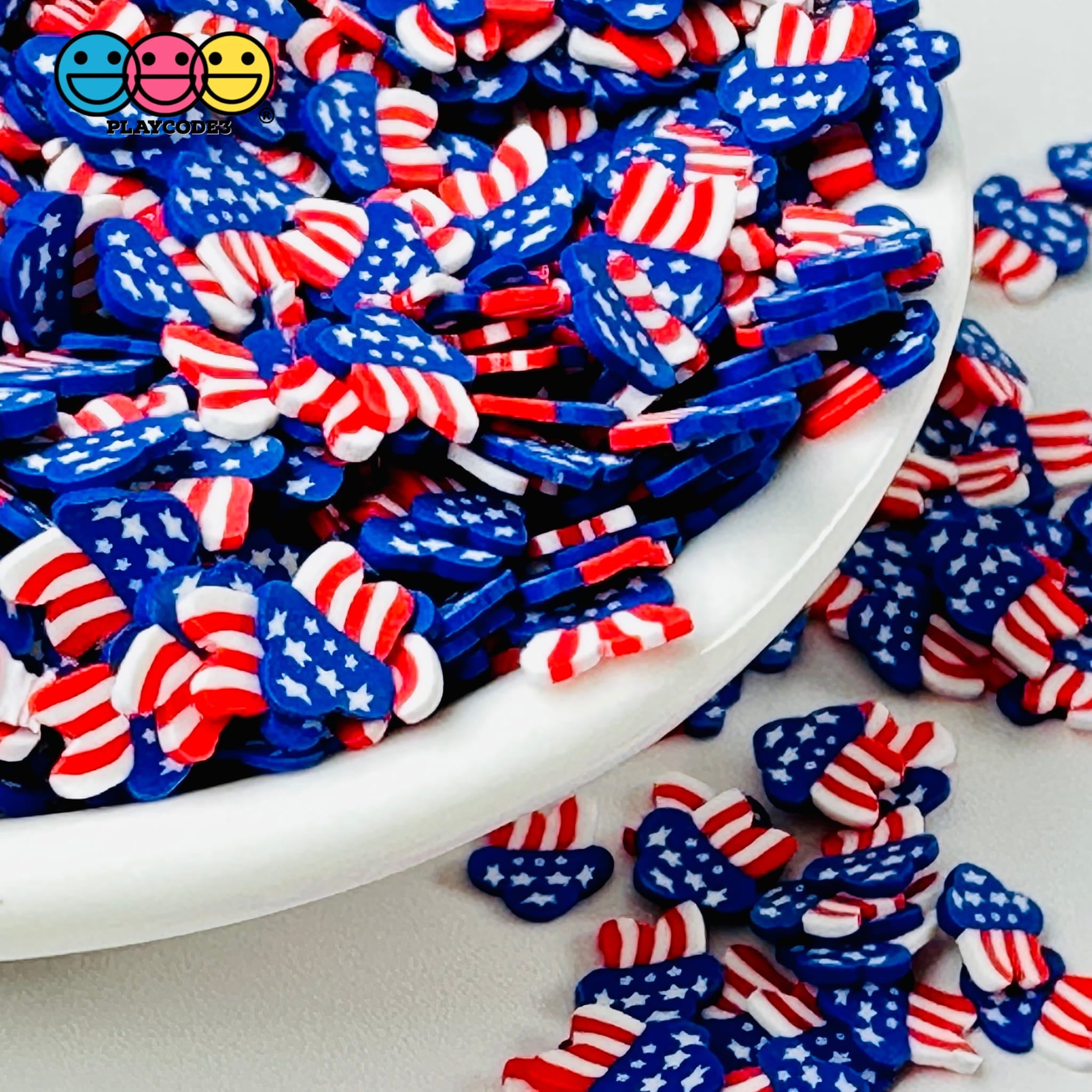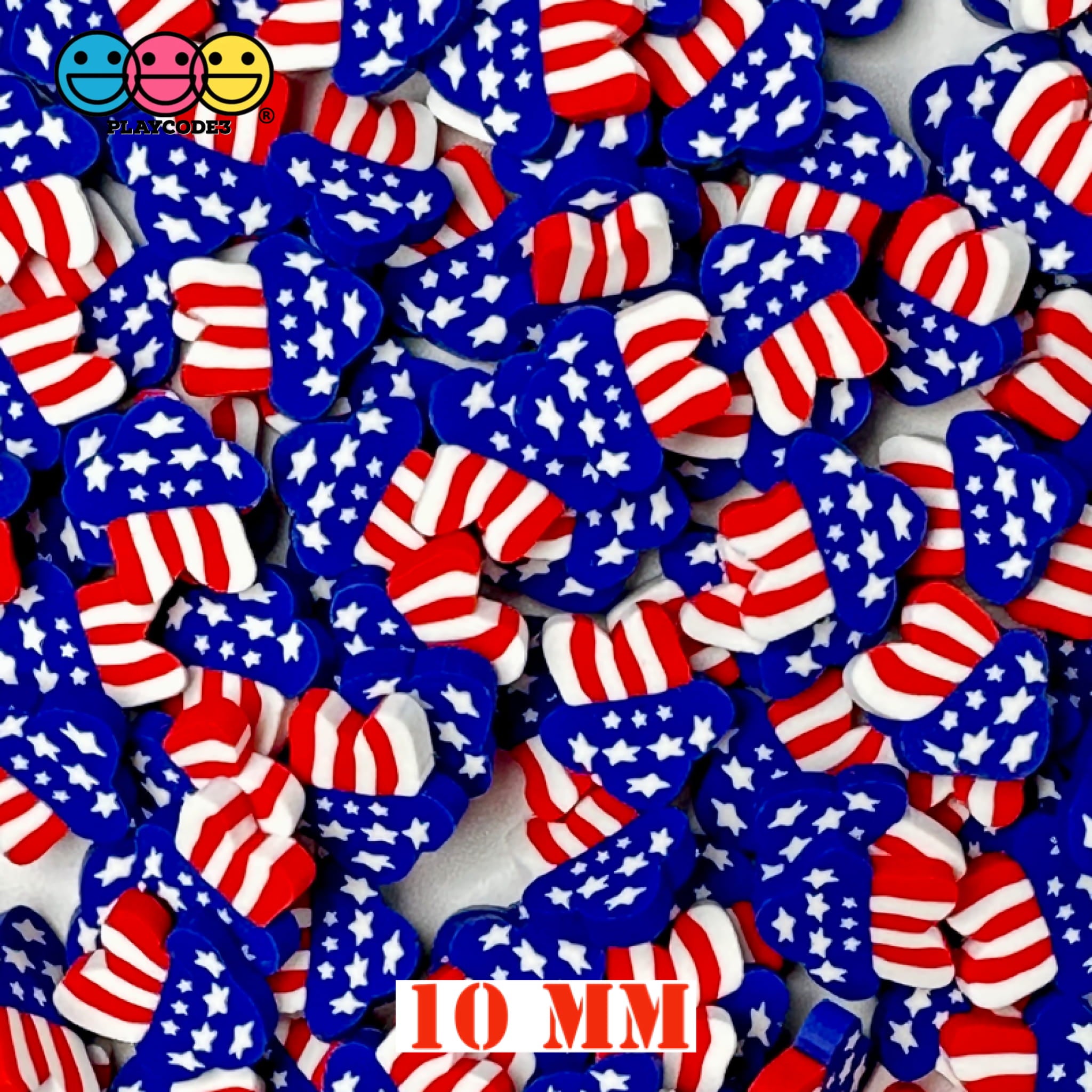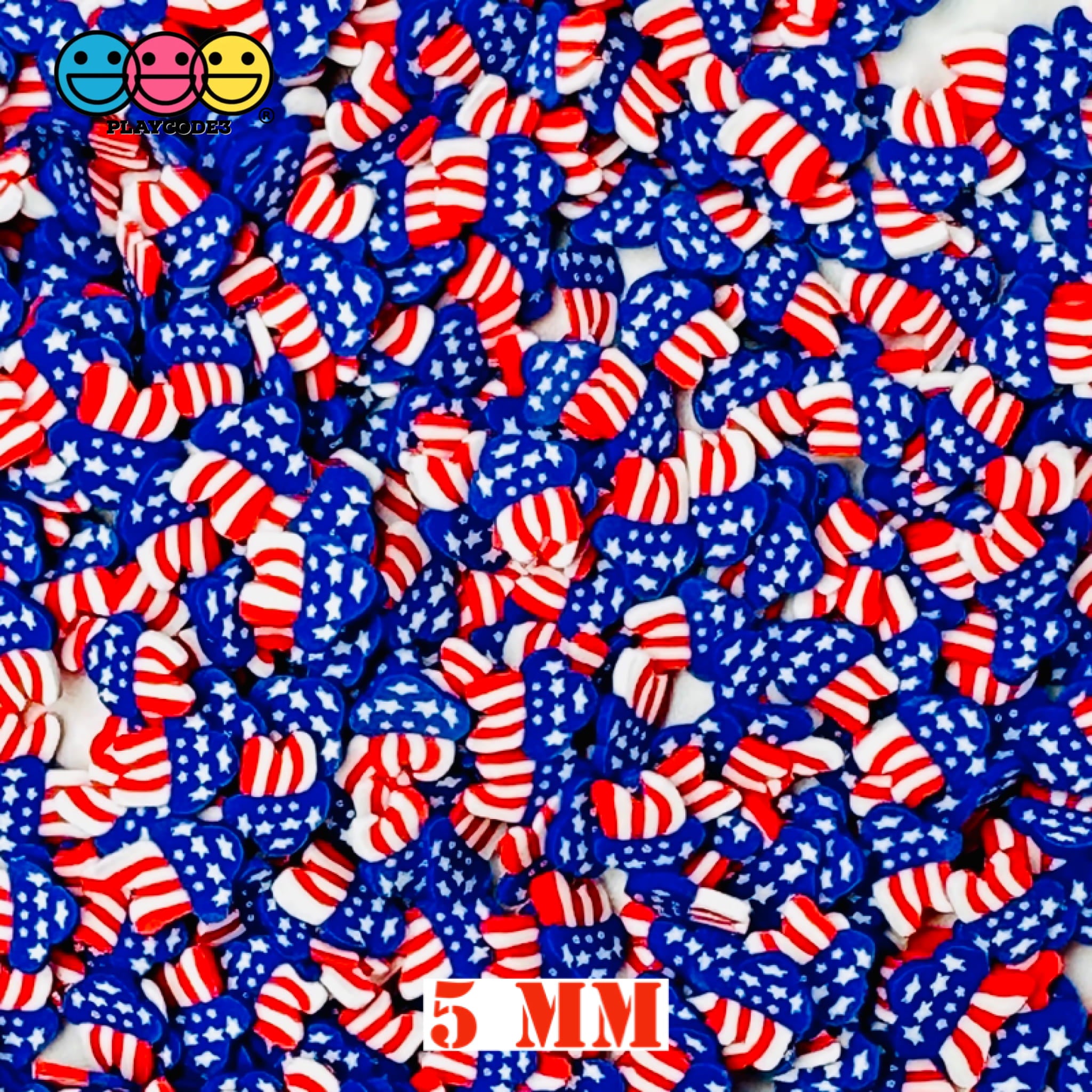 These are Shooting Star 4th of July 5mm/10mm Fake Clay Sprinkles. Make this 4th of July extra special with Shooting Star's Fake Clay Sprinkles! Perfect for decorating projects,Fake Bakery and Slime Supplies, these Fake Clay Sprinkles offer a fun and creative way to make your project pop with patriotic funfetti. Let your imagination soar with these festive decoden fimo jimmies. Celebrate in style!