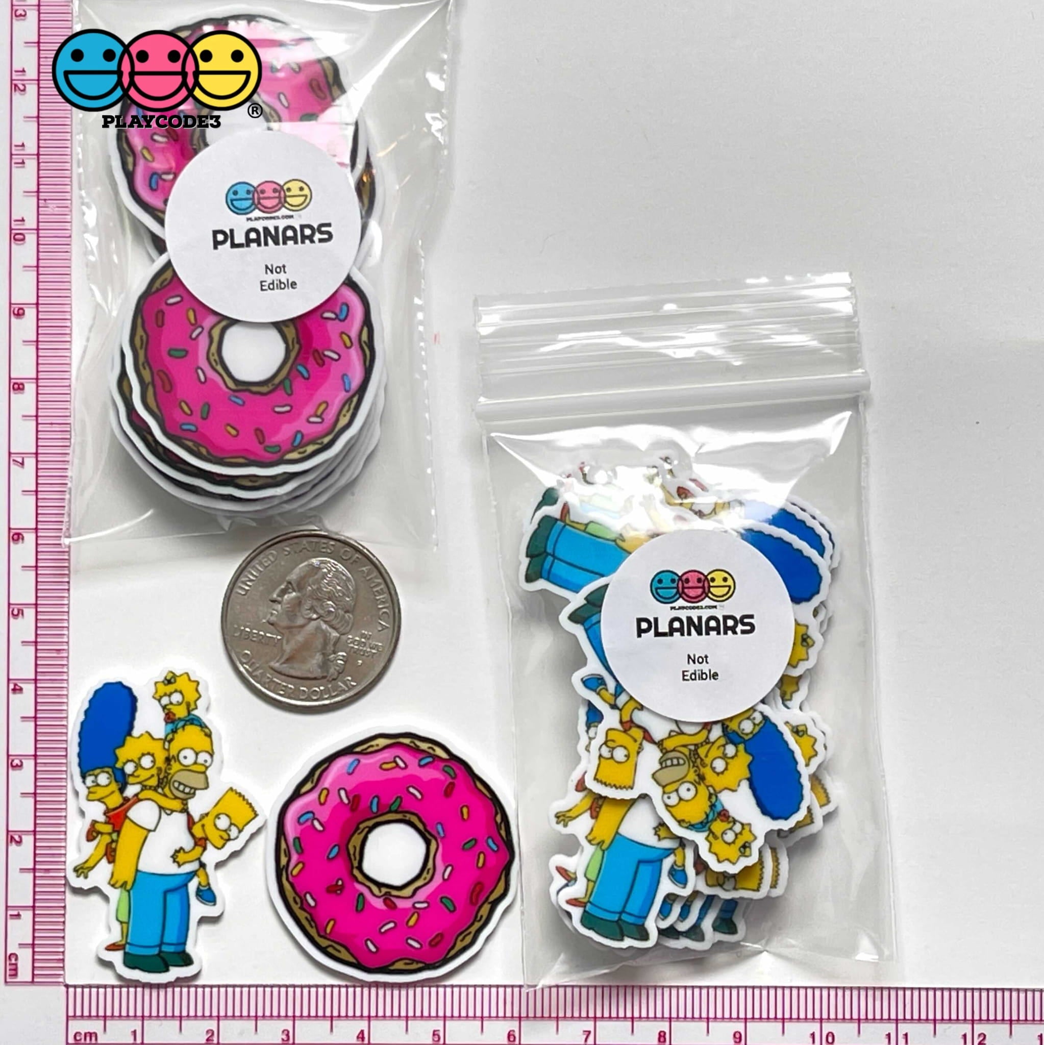 These are The Simpsons Family Homer Doughnut Theme Planar Donut Decoden Planars (10 pieces in each bag). You got the entire Simpsons Family and Homer's favorite doughnut! Doh!! These planars are very colorful and great for you next Simpson crafting creation! Another must have for your every growing collection of crafting supplies!