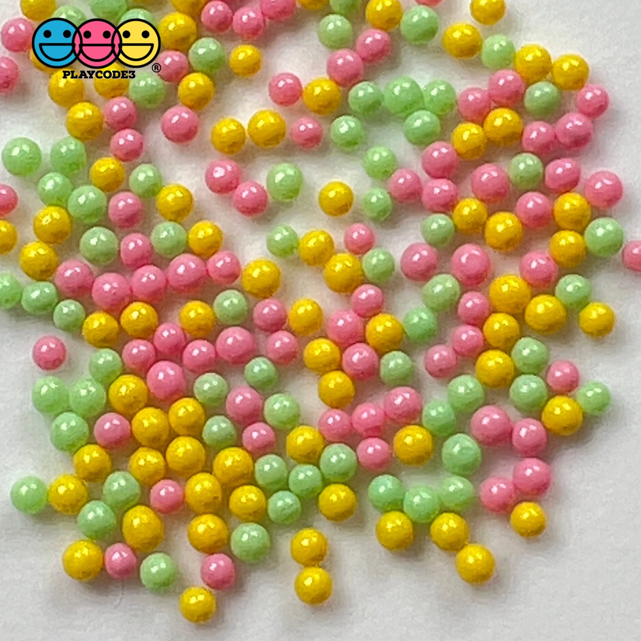 These are Fake (not-edible) Spring Mix Nonpareil Glass 1.9mm Beads Caviar Faux Sprinkles Decoden in bag sizes: 20/100 grams 1.9mm beads  This spring mix has a mix color of pink, yellow and green. NOTE: These fake nonpareil beads are made of glass so they are heavier and shine more than acrylic made beads. Nonpareil beads are so versatile in slime and so many other crafting creations such as fake bake cupcakes and candies. You can use them for slime, craft, hair bow decoration, scrapbook, jewelry making etc.