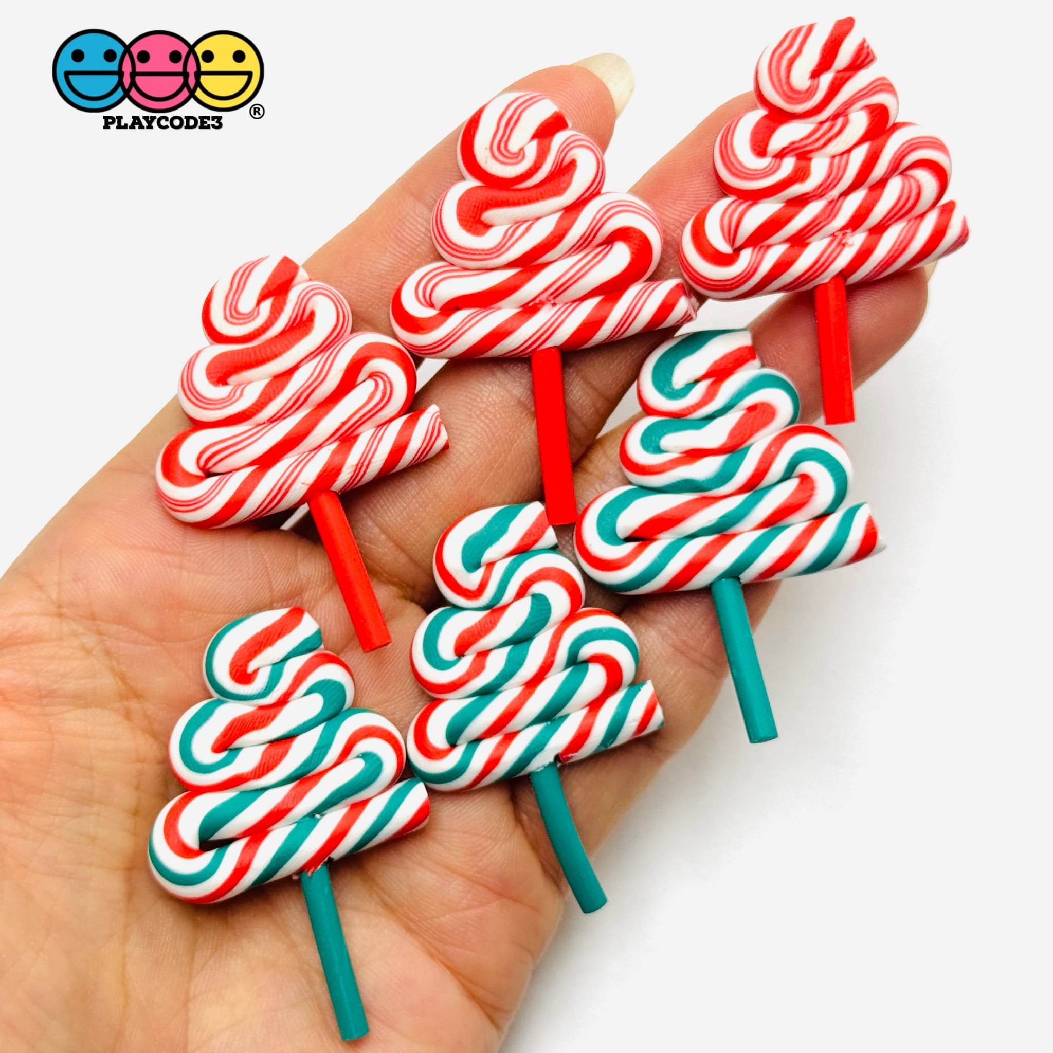 This fun set includes 5 fake lollipops per bag in two playful options: red and white or a festive green, red, and white swirl combo. Each piece looks just like a classic Christmas treat, making them perfect for embellishing your holiday crafts, fake bakes, or slime projects.