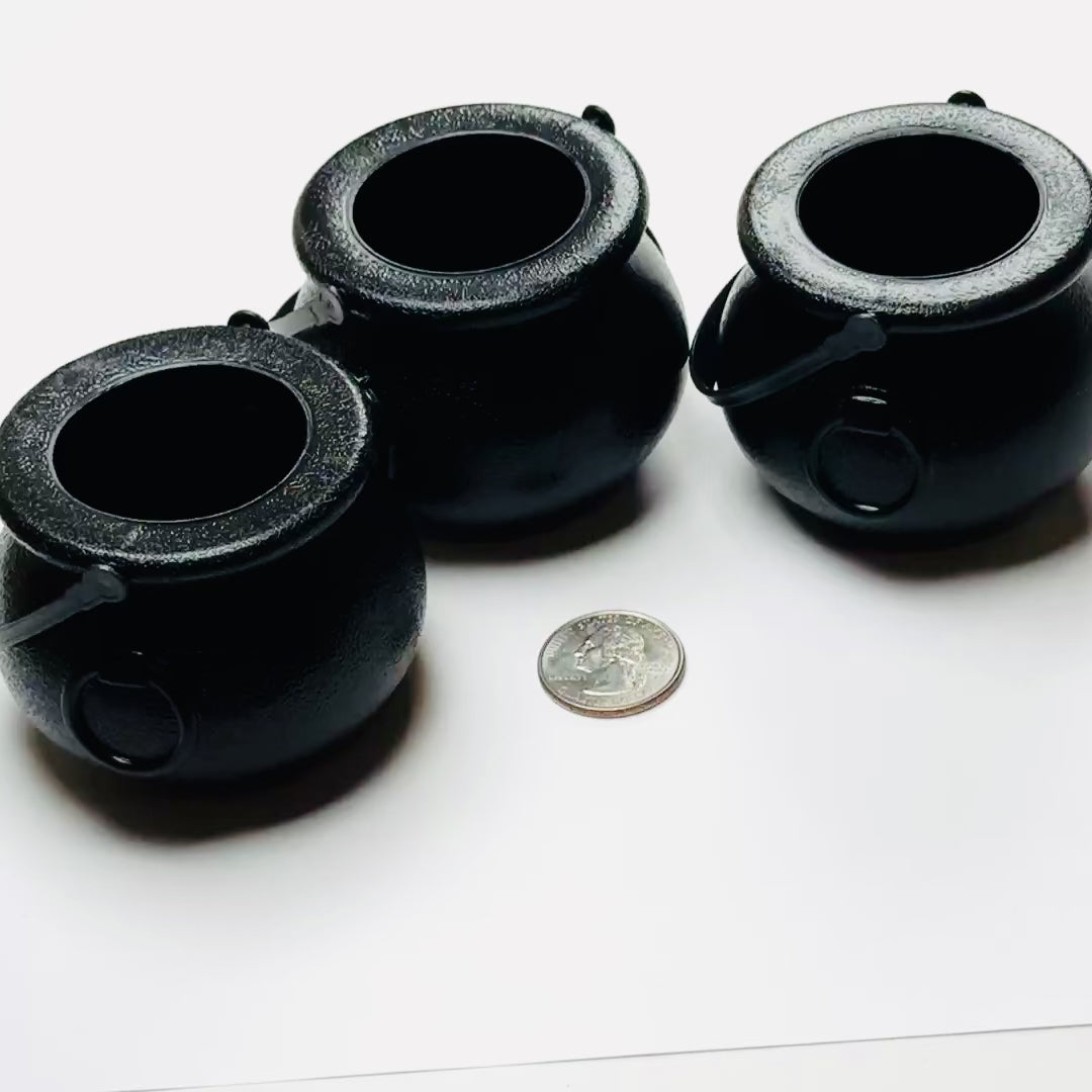 These lightweight black plastic witch cauldrons come with movable handles and are perfect for Halloween-themed crafts, party favors, trick-or-treat containers, or spooky Decoden creations. Their classic round shape and textured finish add a magical touch to any DIY project.