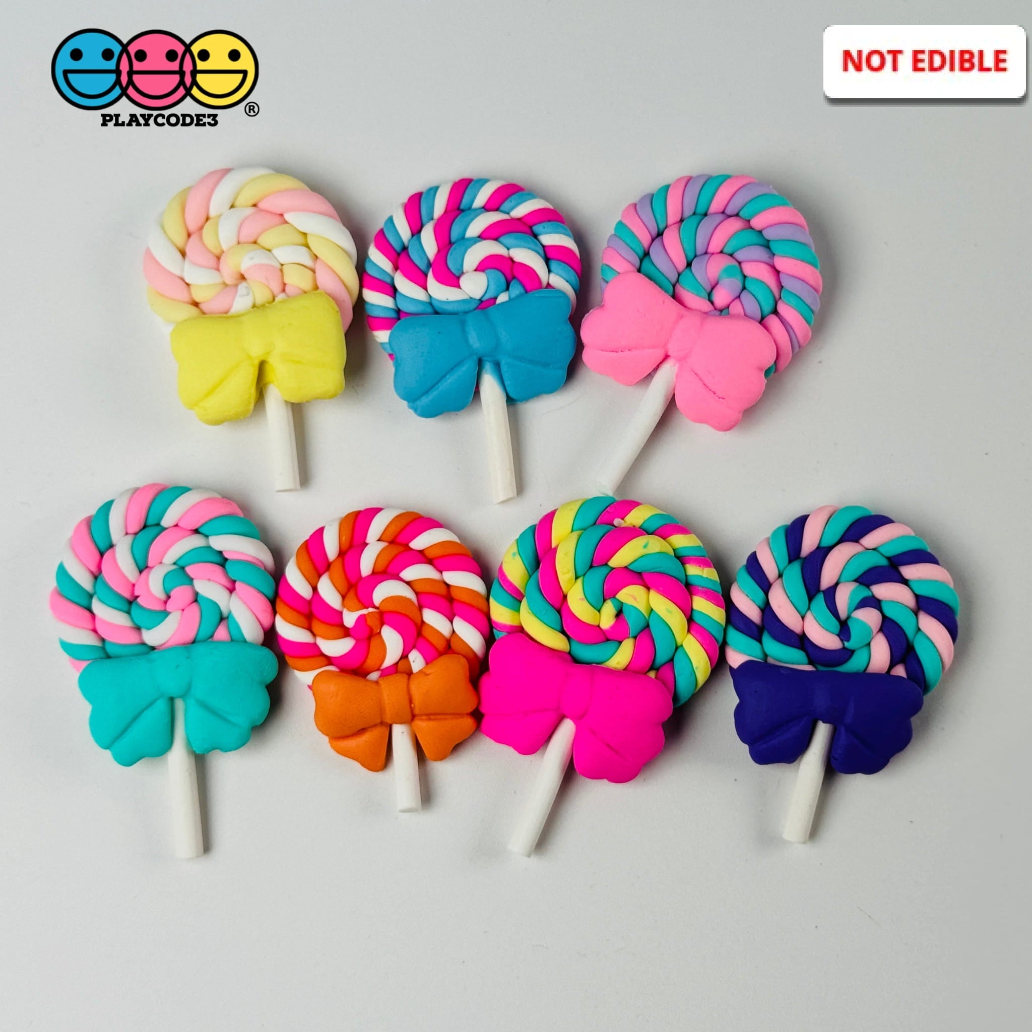 Lollipop with Bow Fake Candy Cabochons Decoden Charm 7/10 pcs