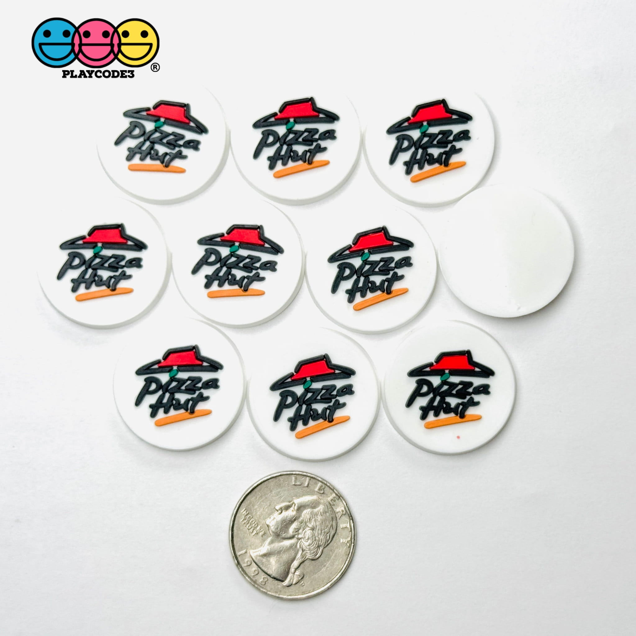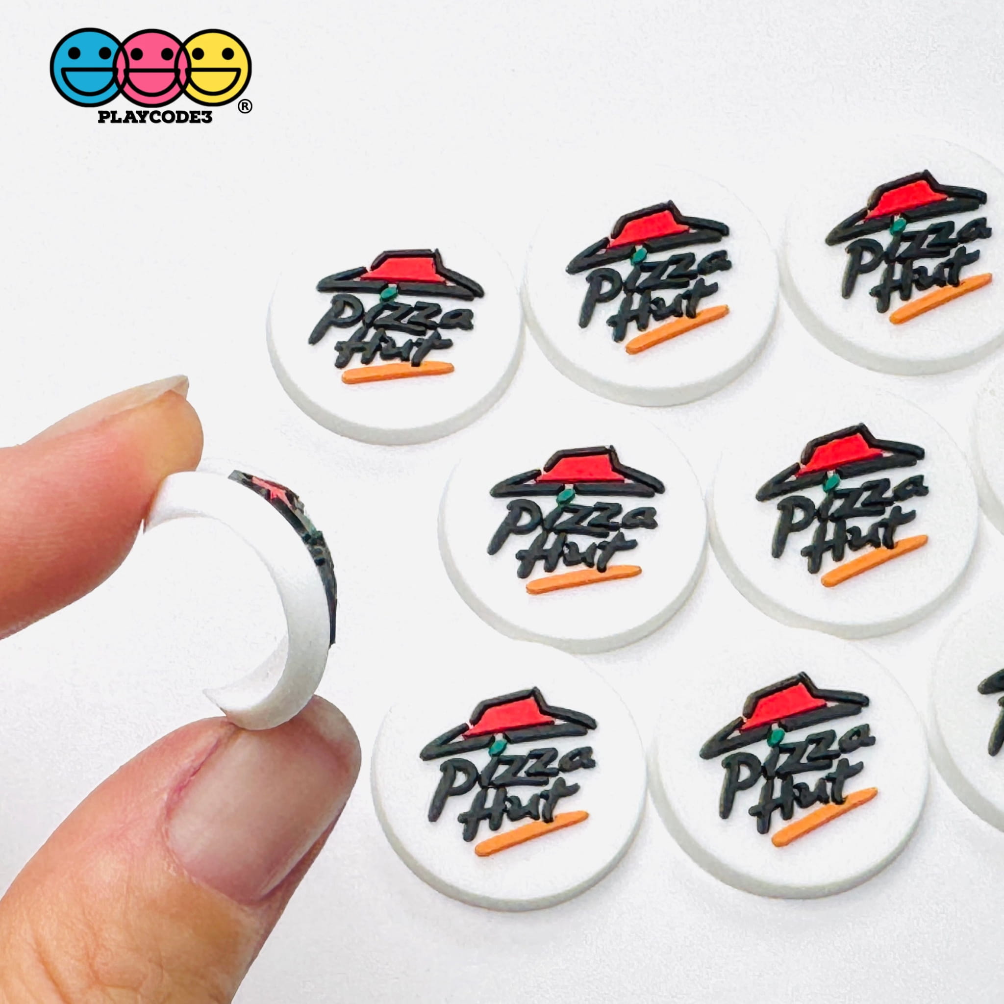 These fun flatback charms feature a playful design inspired by a popular pizza chain’s iconic roof logo. Perfect for slime supplies, fake bake projects, decoden crafts, or as unique shoe charms (no buckle button included). The flexible material makes them easy to use in any creative design.