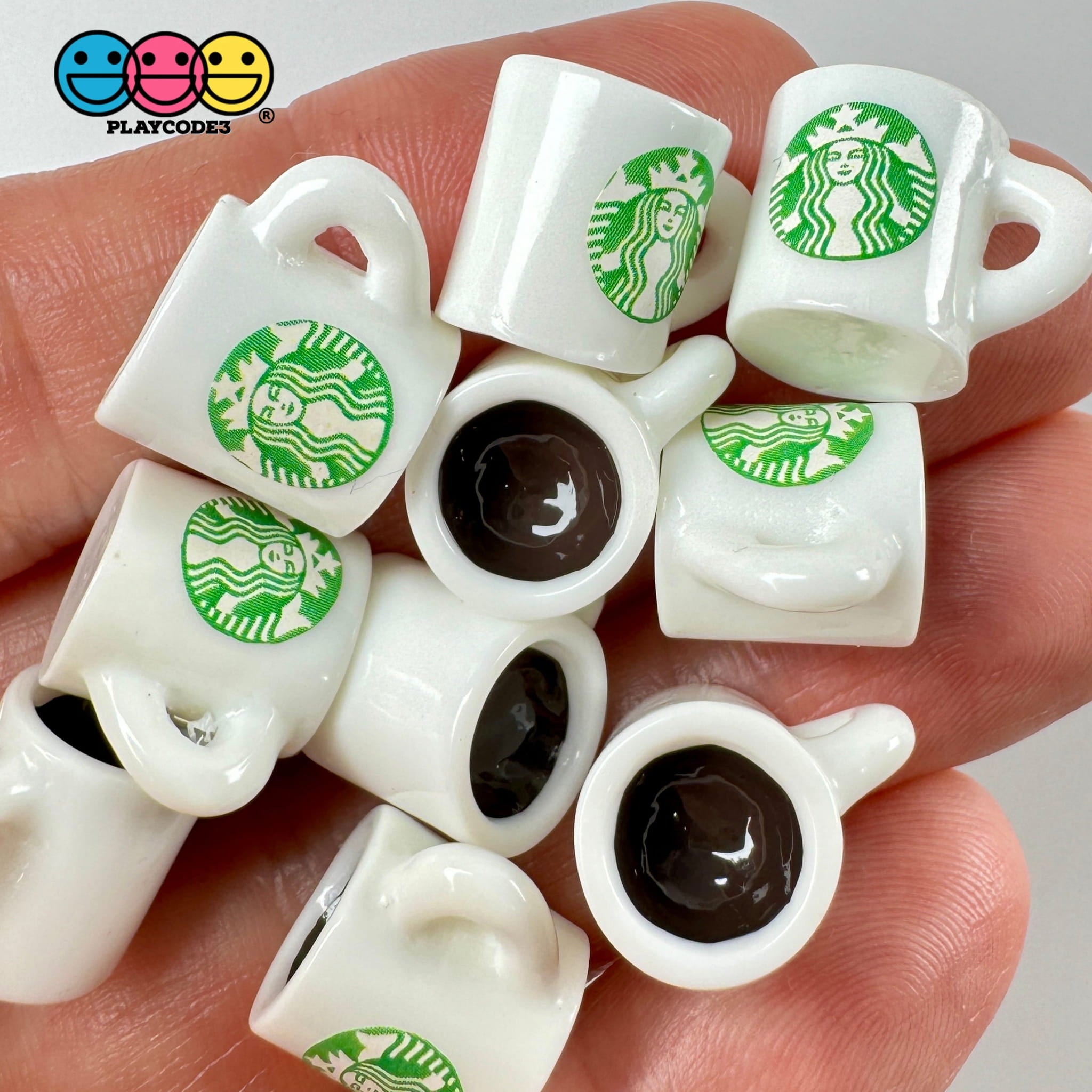 Overall, these "Small Size Coffee Cup with Handle Hook Flatback Cabochons" are perfect for anyone looking to add a touch of whimsy and personalization to their craft projects. Their size and design make them particularly suited for detailed work where a small yet distinctive decoration is desired.