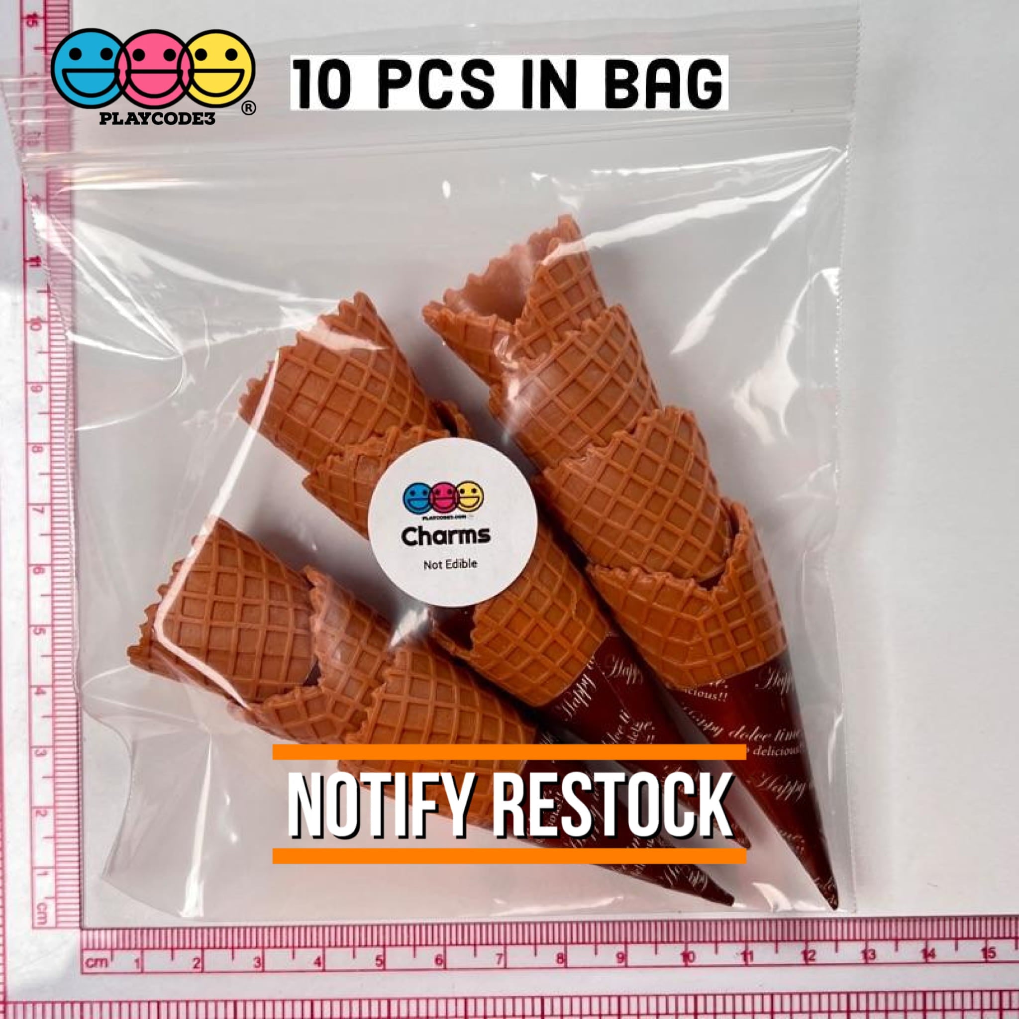 Waffle Ice Cream Cone Wrapped Silicone Soft Charms Fake Food Realistic 10 pcs