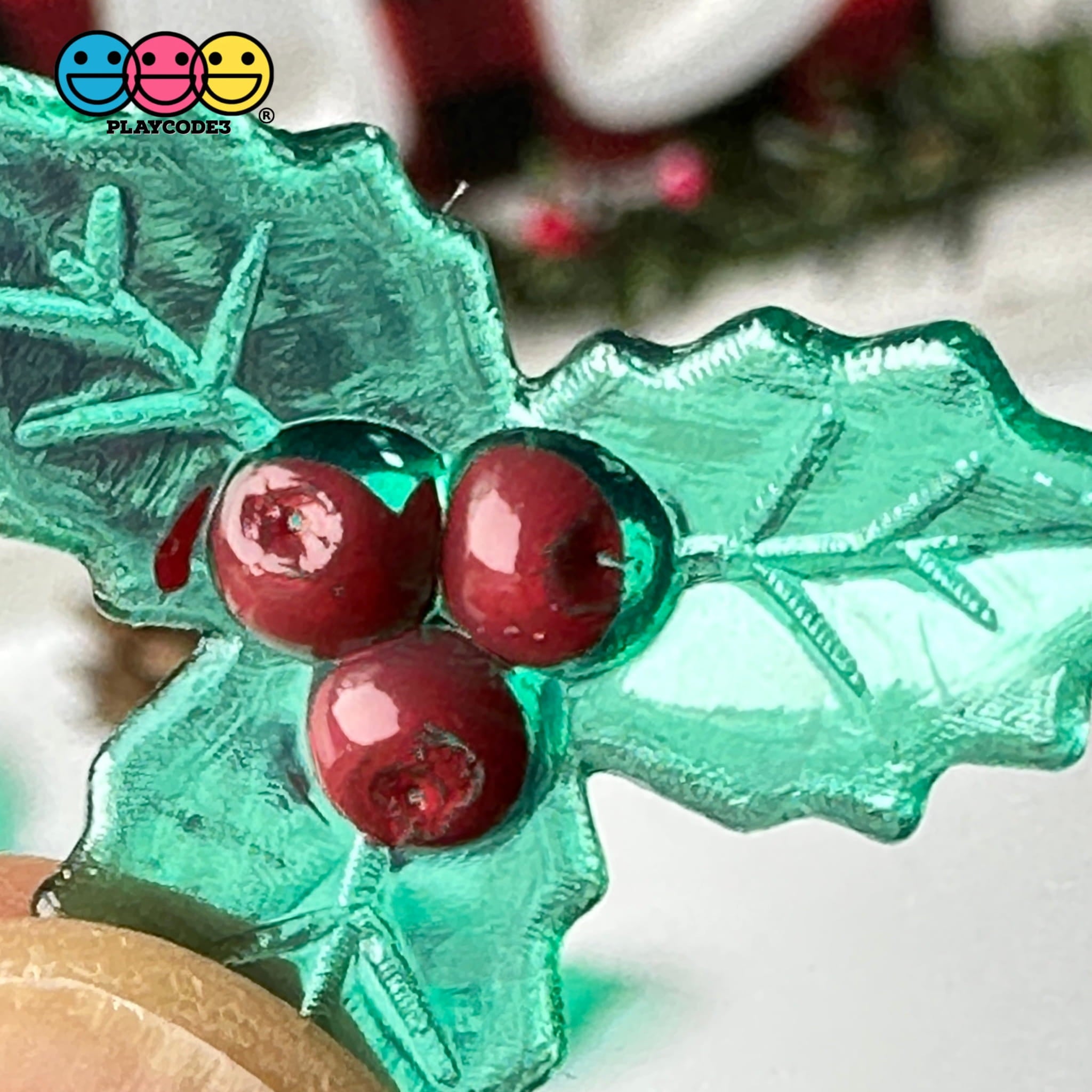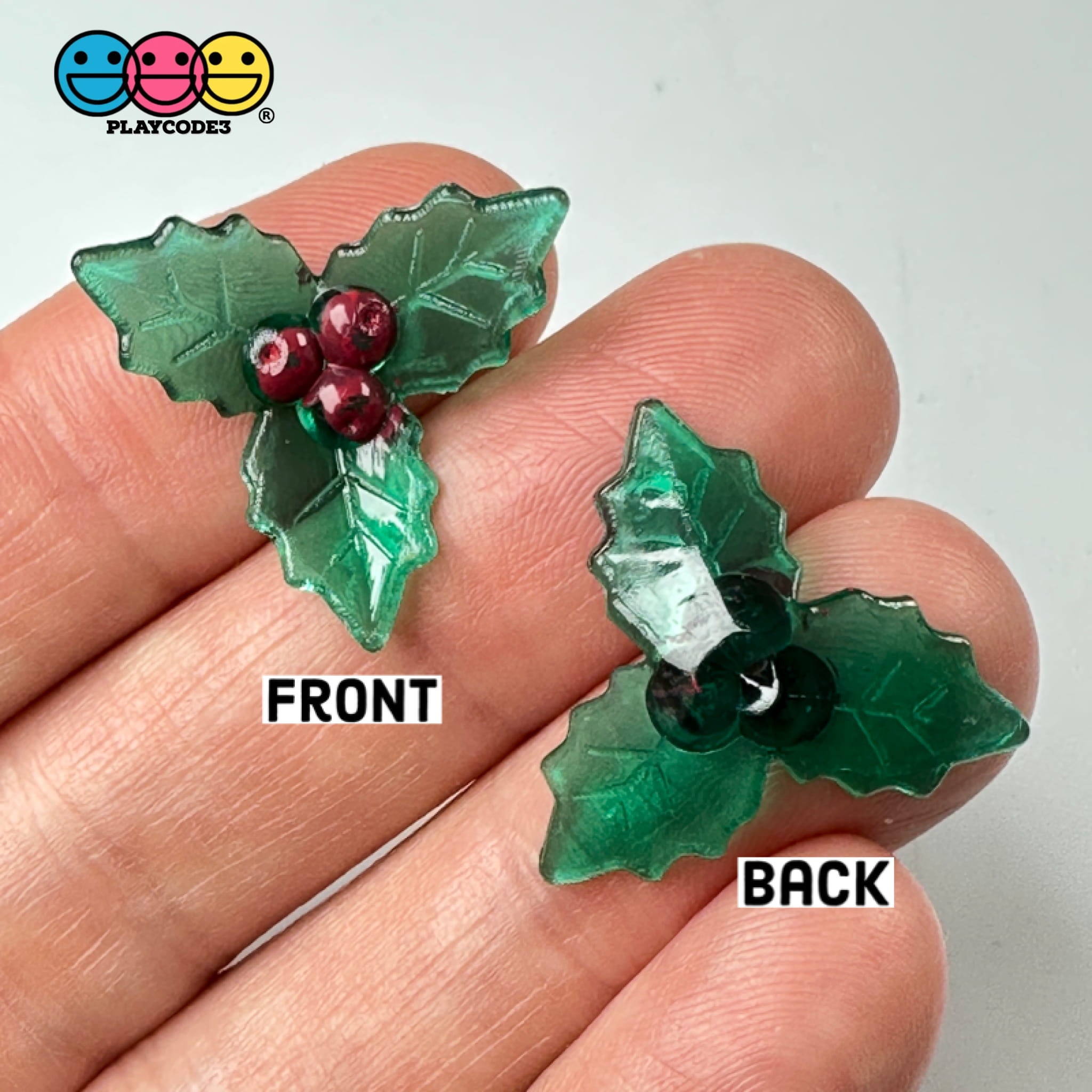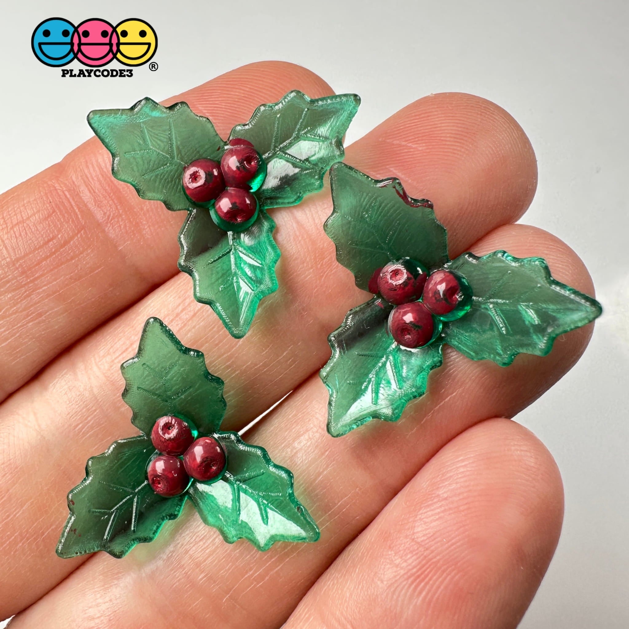 These are Mistletoe Mini Transparent Charm Christmas Resin Home Décor Accessories Cabochons(10 pieces in bag). Nice details on these mistletoe mini transparent charms; the leaves look like glass but they are plastic and they are folded in to give a nice 3D look to them (see pictures/video for details). Great for everyone to enjoy when creating their next Christmas Holiday theme design.