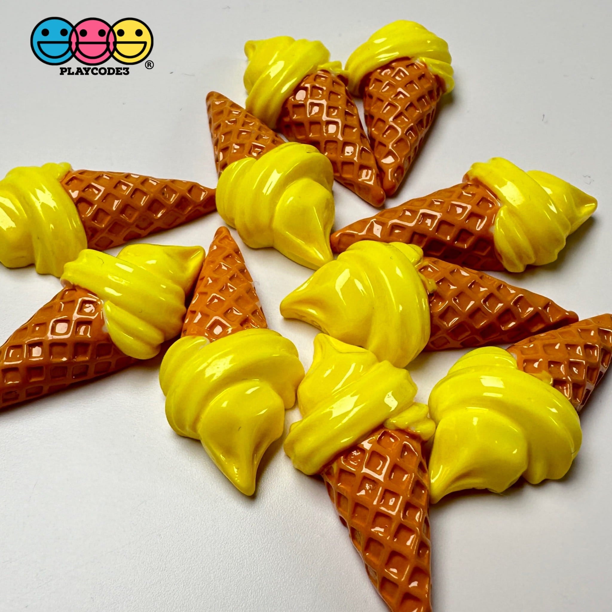 Introduce a touch of whimsy to your crafting projects with our Small Mango Ice Cream Cone Fake Food Flatback Cabochons. Perfect for Decoden projects, jewelry making, scrapbooking, and more, these charming pieces come in a set of 10, allowing for a wide range of creative applications. Each cabochon is meticulously crafted to resemble a delightful mini mango ice cream cone, complete with intricate details that bring each piece to life. Their flatback design makes them easy to adhere to any surface, offering endless possibilities to enhance your creations with a playful and sweet accent. Whether you're adorning phone cases, making unique jewelry, or adding a fun touch to your scrapbook, these cabochons are sure to inspire and delight.