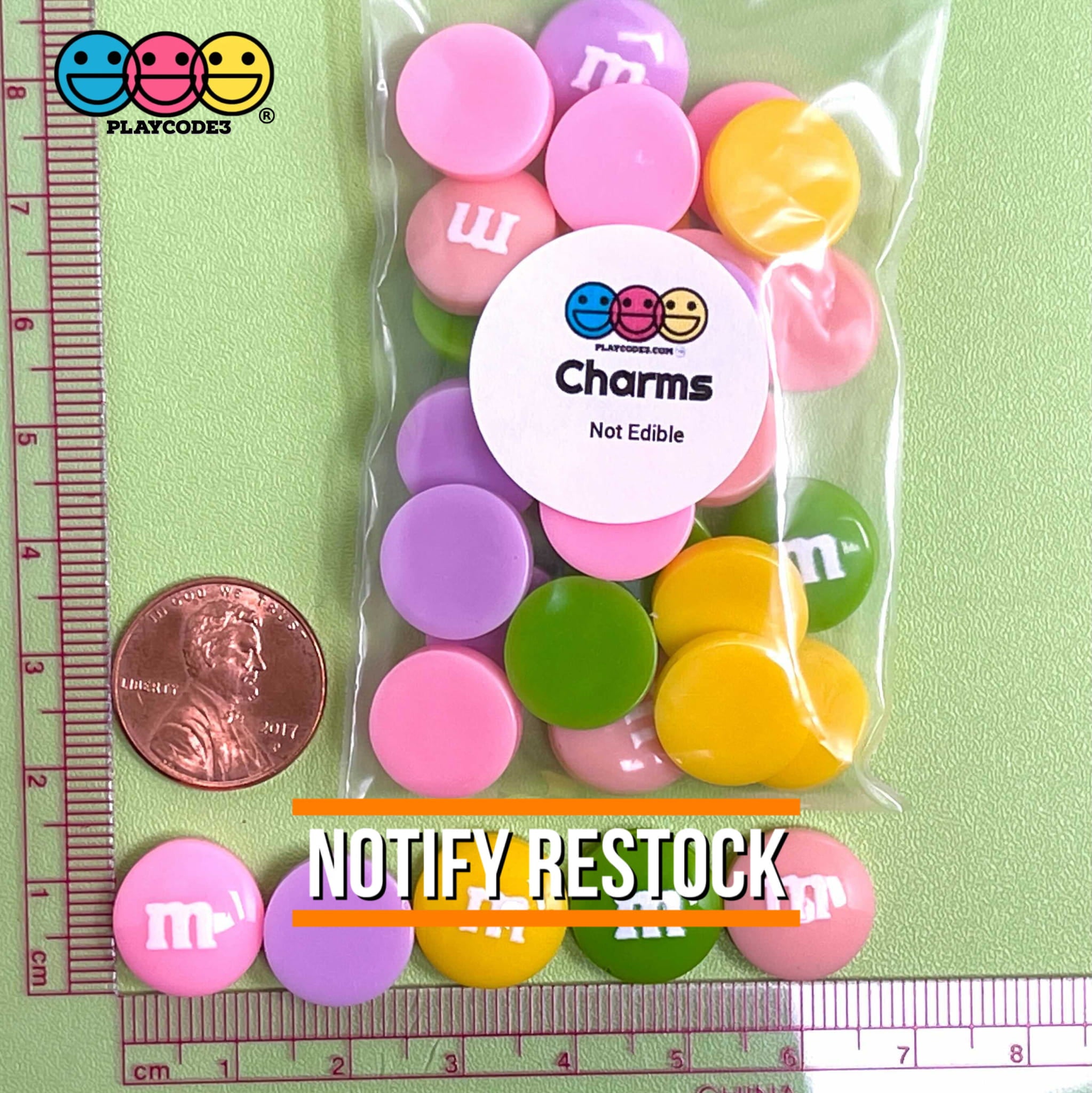 These are M&M Fake Candies Easter Pastel Color Mix Candy Charms Flatback Cabochons  (30 pieces in bag).  These fake candy flatback charms are in a Pastel color mix theme; great for the Easter Holiday craft creations!  Colors of yellow, pastel purple, pink and green. These of course can be used for any design with this color scheme; they look great on slimes and fake bakes too! Remember these are fake NO EATING!