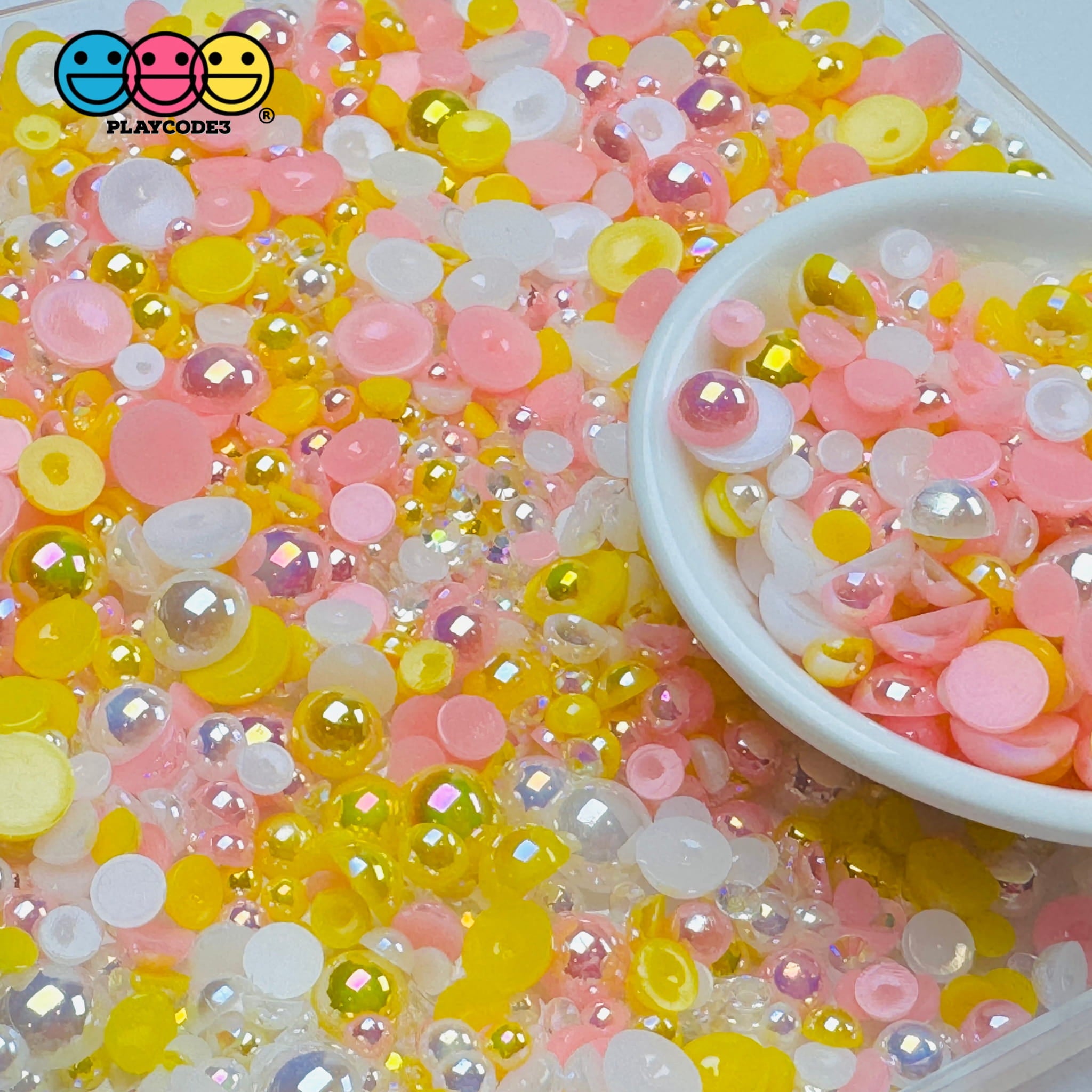 Add sparkle and charm to your creations with these Acrylic Rhinestone Flatback Beads! Featuring a stunning mix of pastel and vibrant colors such as yellow, pink, white, and clear rhinestone accents, these faux sprinkles are perfect for decoden projects, slime supplies, fake bakes, jewelry making, and more. Their flatback design makes them easy to work with, giving your crafts a polished and professional touch.