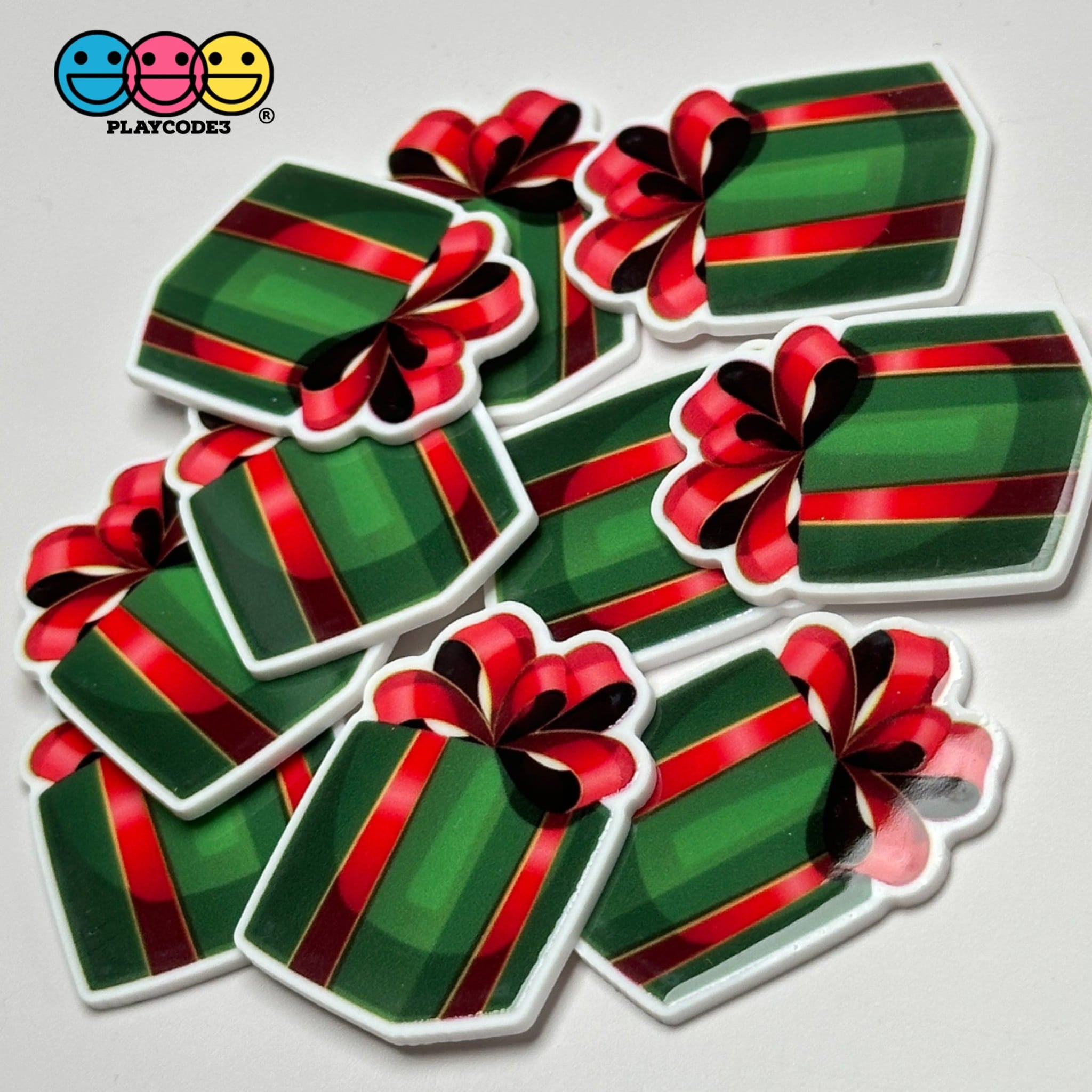 ๐ŸŽ„ Set of 10 Pieces in Each Bag: Each bag contains 10 beautifully designed planars, showcasing Christmas wrapped gifts in vibrant green with a striking red ribbon and bow. These unique planars are perfect for decorating gift boxes, planners, or any crafting project you have in mind.