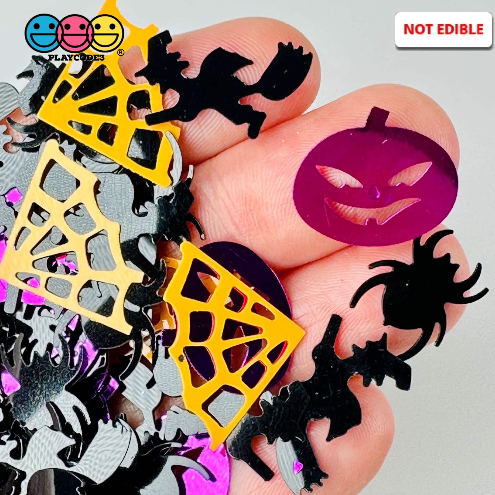 Halloween Jack-O-Lanterns Spider Web Witch Orang Black Purple Spooky Glitter Plastic Decoden Table Funfetti