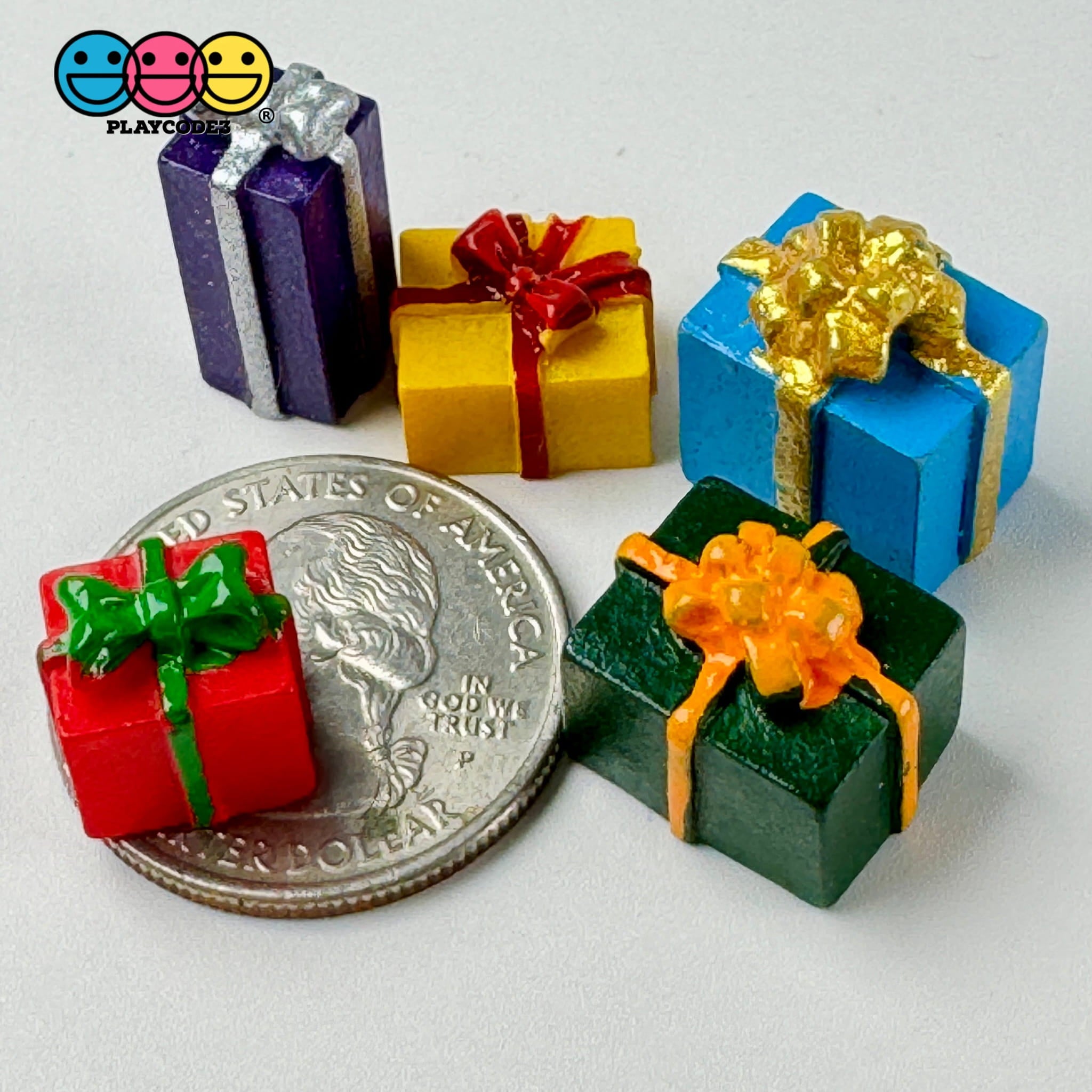 Christmas Holiday Gift Boxes 10pcs. 5 Types Red, Yellow, Green, Blue, Purple, Cabochons Decoden Charm 10 pcs