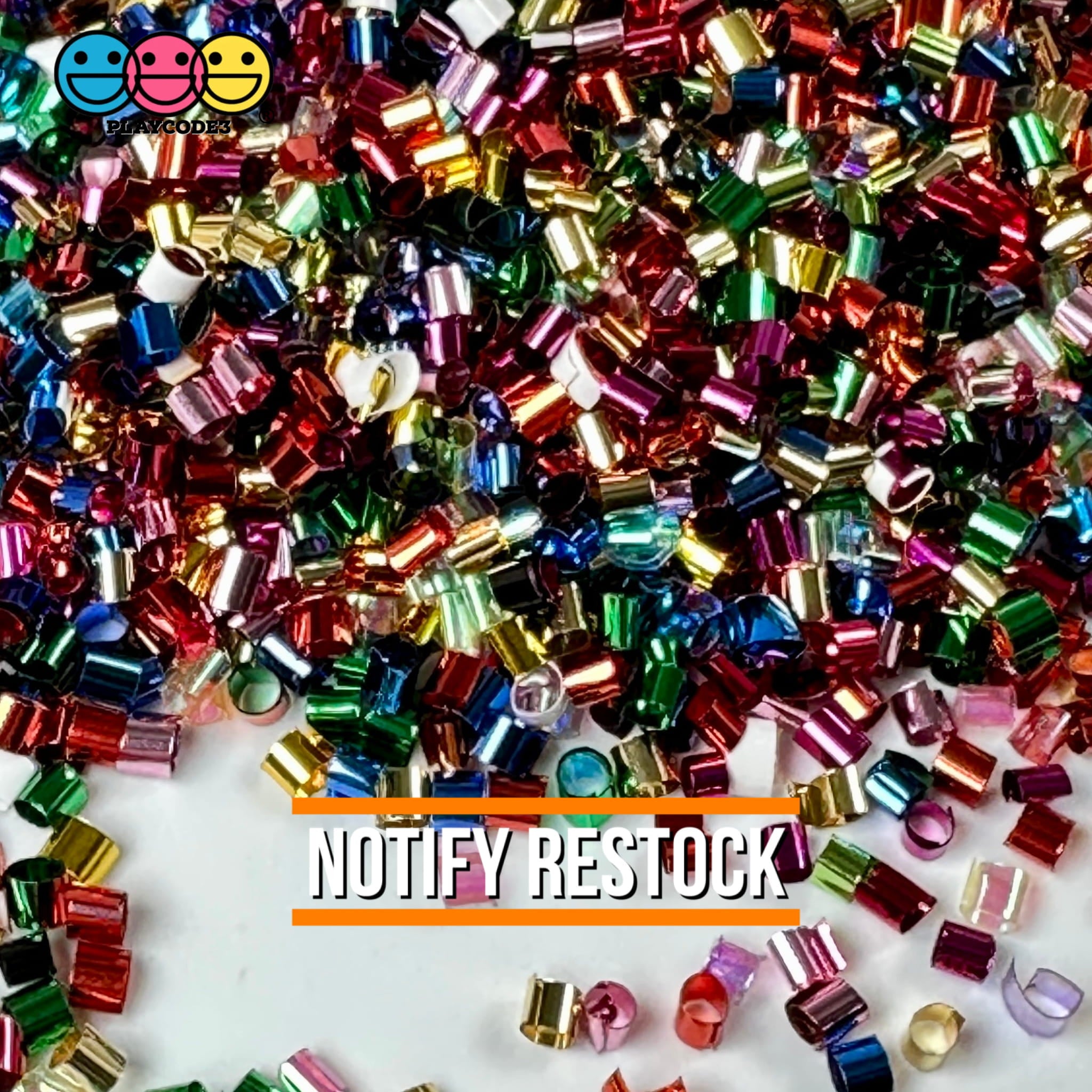 These are Metallic Rainbow 500g Bingsu Beads Slime Crunchy Iridescent Crafting Slime Supplies Cut Plastic Straws. These are Hot Trending light weight plastic bingsu beads. They can make the crunchiest Bingsu Beads slime and AWESOME ASMR! You can also use them as craft decorations. (put them in an ornament, resin projects etc.)