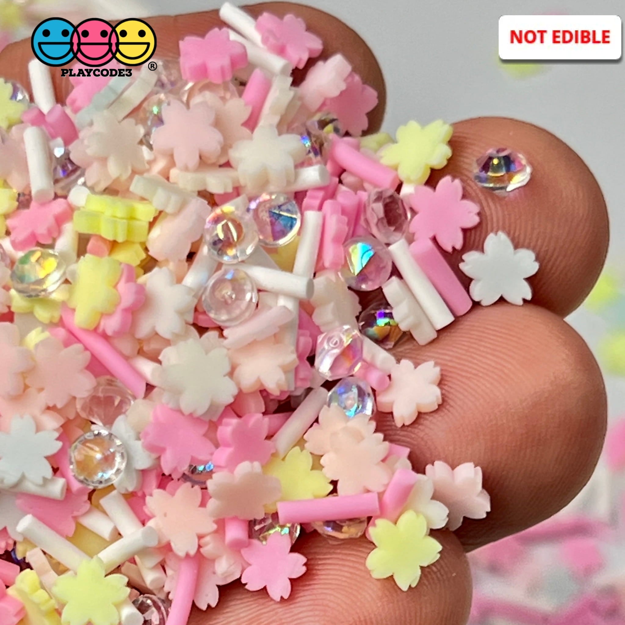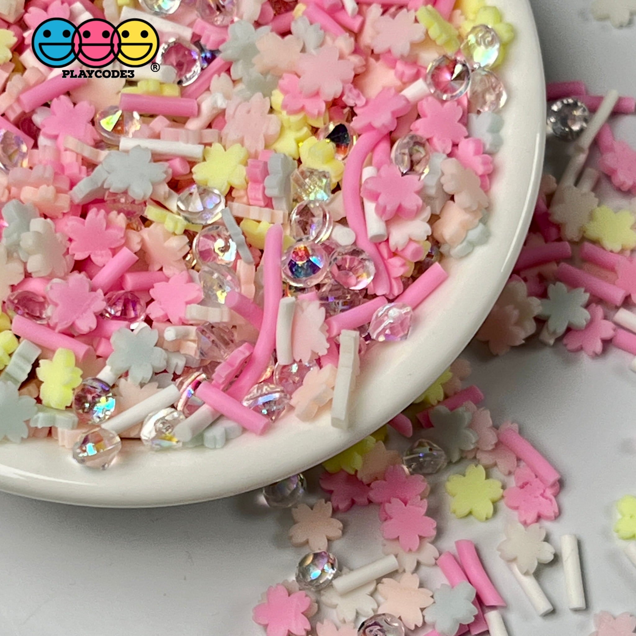 Blooming Blossoms Mix Fimo Diamond Rhinestone Fake Polymer Clay Sprinkles Pink Flowers Jimmies Funfetti