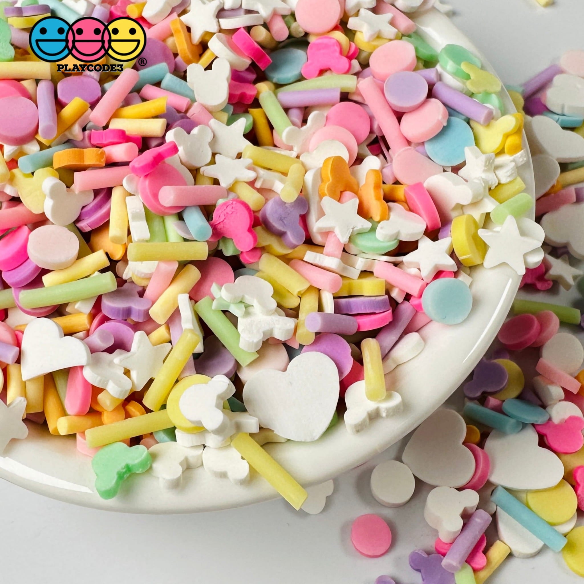 Fake Sprinkle Pastel Color Mix - Polymer Clay Sprinkles, Fimo Slices, Confetti, Heart & Mouse - Slime Sprinkle, Fake Bake, Shaker Card Filler