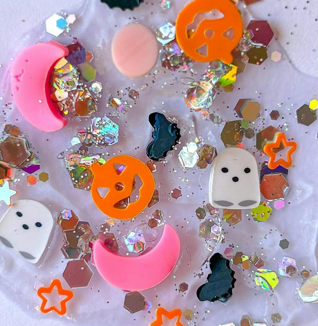 Pink Halloween Jack-O-Lantern Moon Ghost Bat Glitter Holiday Fake Clay Sprinkles Decoden Fimo