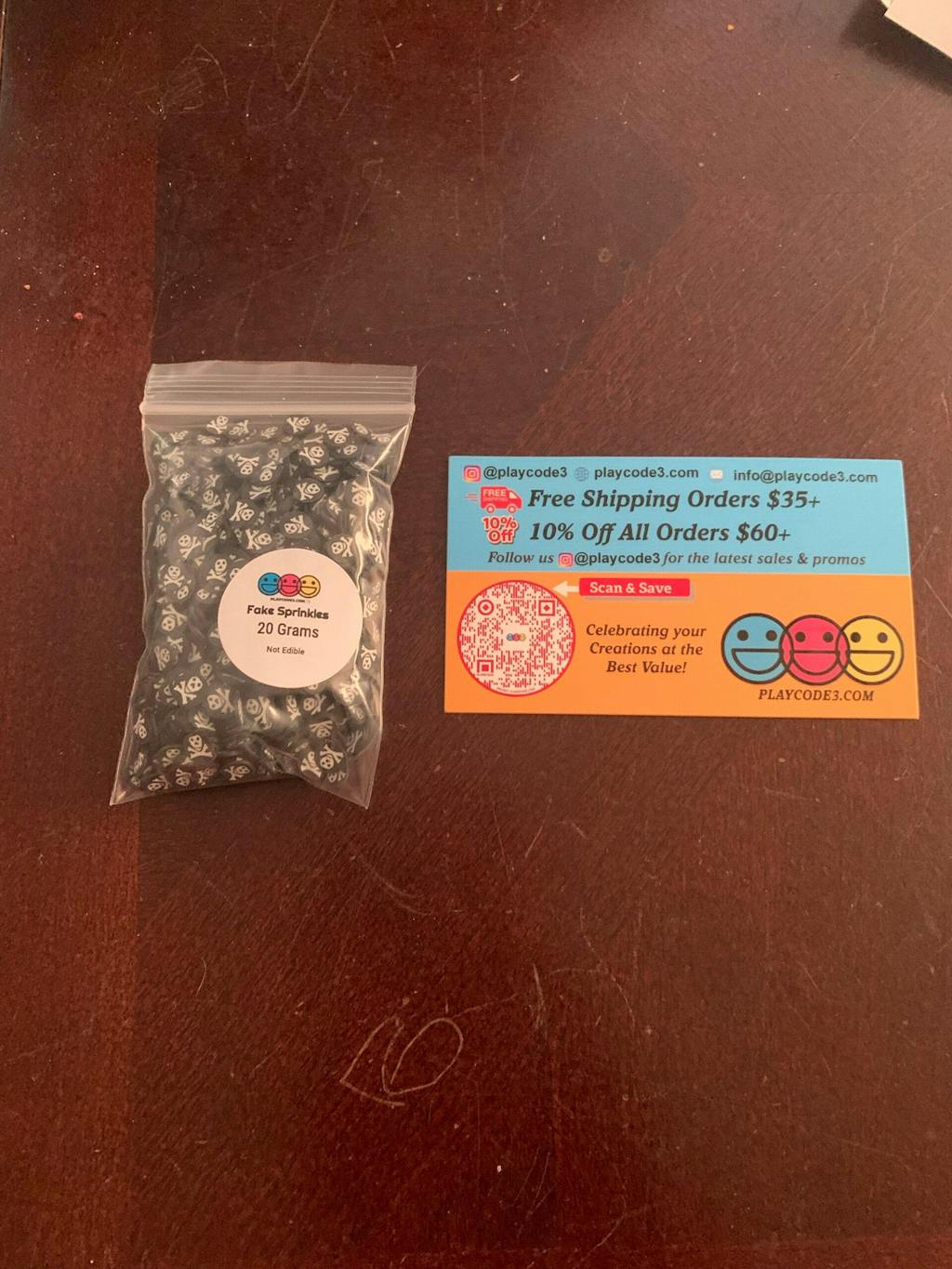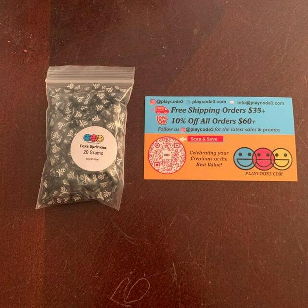 Hello there Hearties! These are Pirate Flag Skeleton and Cross bone sprinkles look super cute! Great for both Halloween and those pirate themed creations. Good for nail art too! Argh Matey Pirates! 20 grams sprinkles will fill 3-5 8oz slime topping.