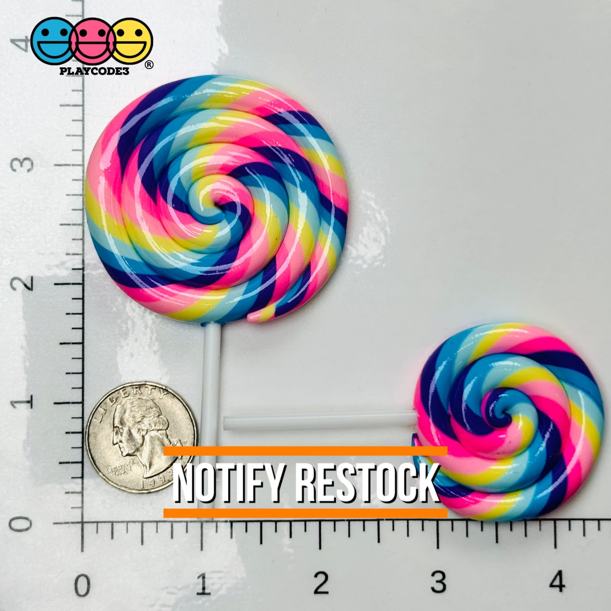 Bring a hint of sweetness and color to your crafting projects with this set of 3 multi color lollipop charms! Perfect for adding a bit of charm to your slimes, creating fun party decorations, and livening up scrapbooks, these high-quality resin charms and fake bake cabochons will make your crafts extra special.