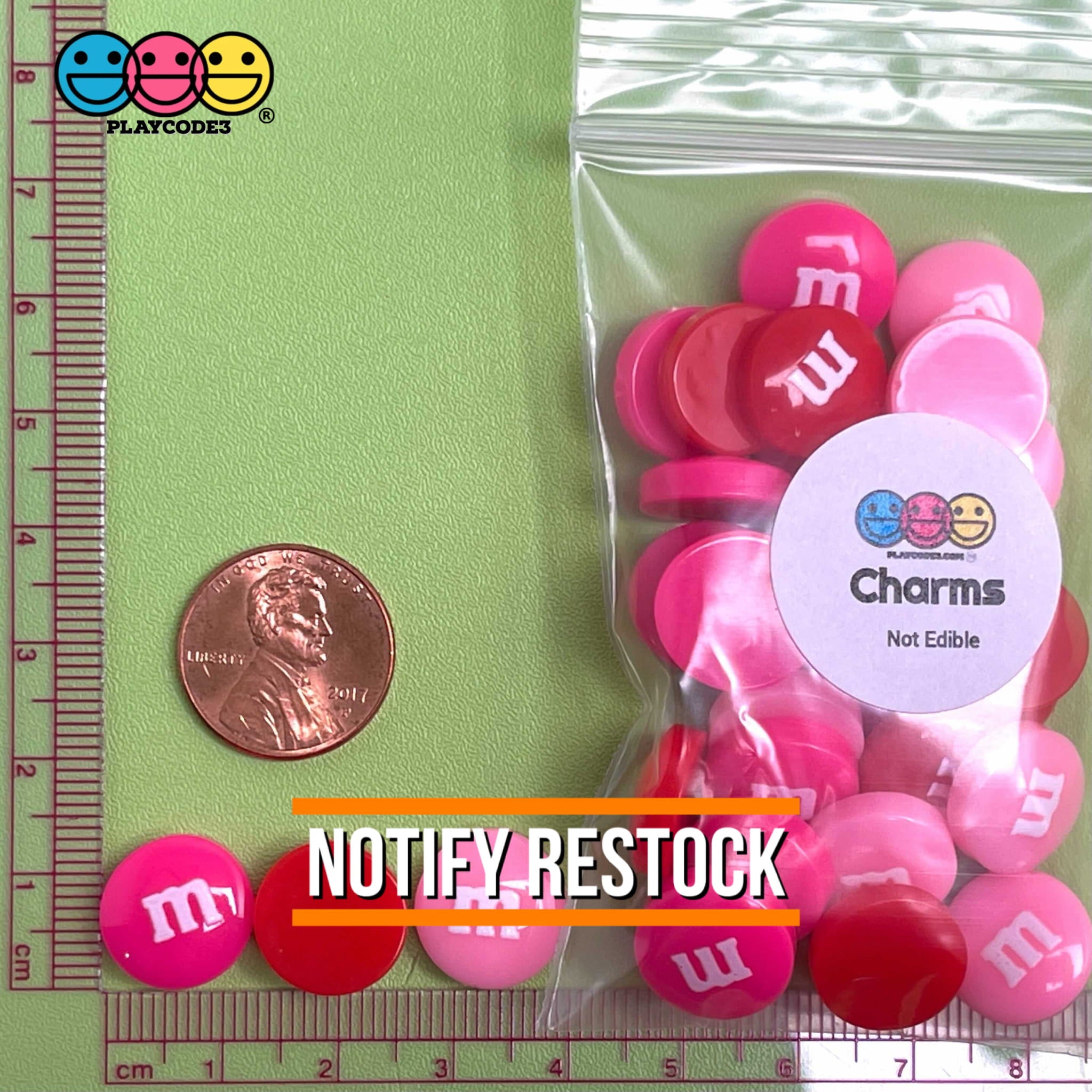 These are M&M Fake Candies Valentine's Day Mix Colors Candy Charms Flatback Cabochons (30 pieces in bag).  These fake candy flatback charms are in a Valentine's Day mix theme Colors of red, hot pink and pink. These of course can be used for any design with this color scheme; they look great on slimes and fake bakes too! Remember these are fake NO EATING!