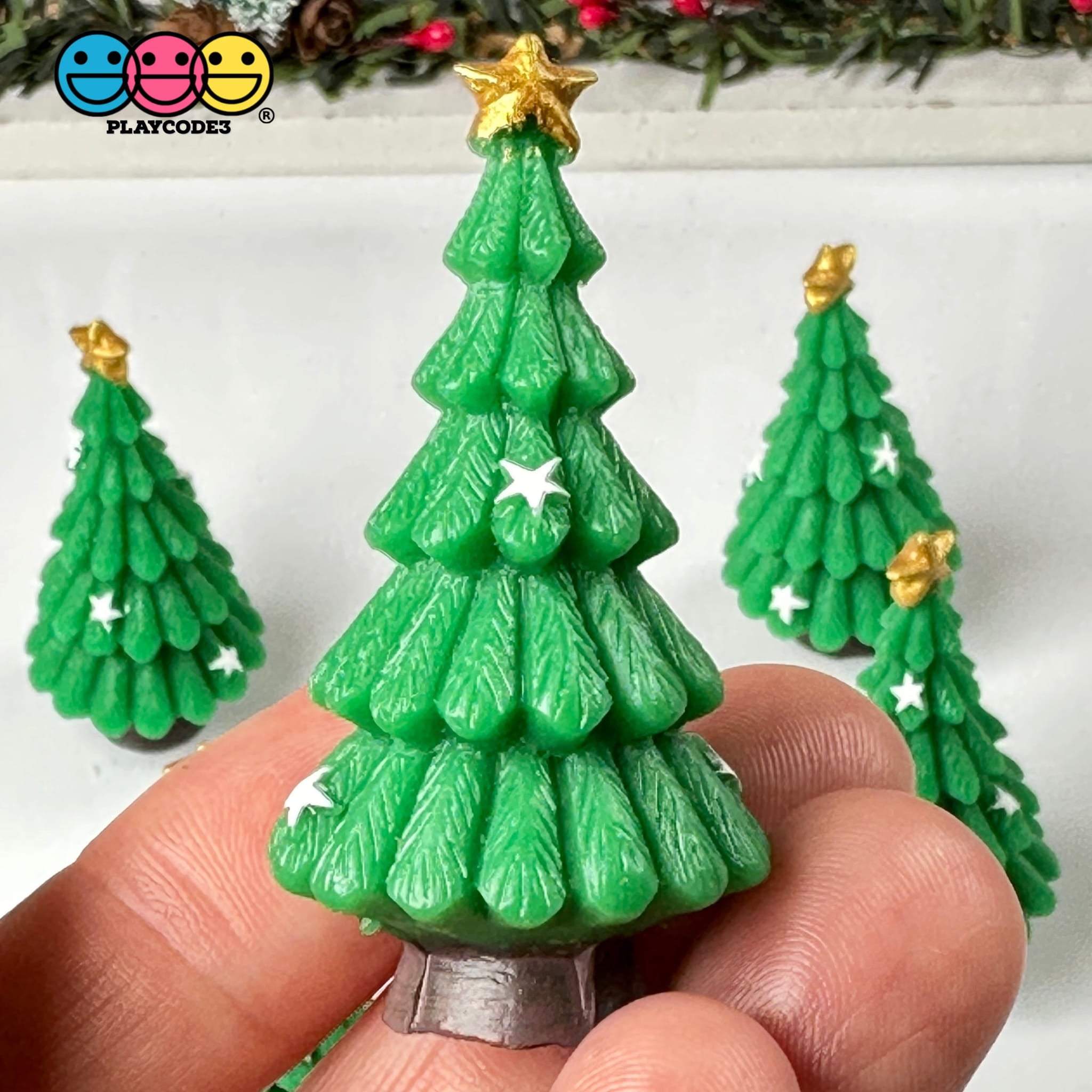 Christmas Tree With Stars Figurines Plastic Resin 5 Pcs Playcode3 Llc Figurine