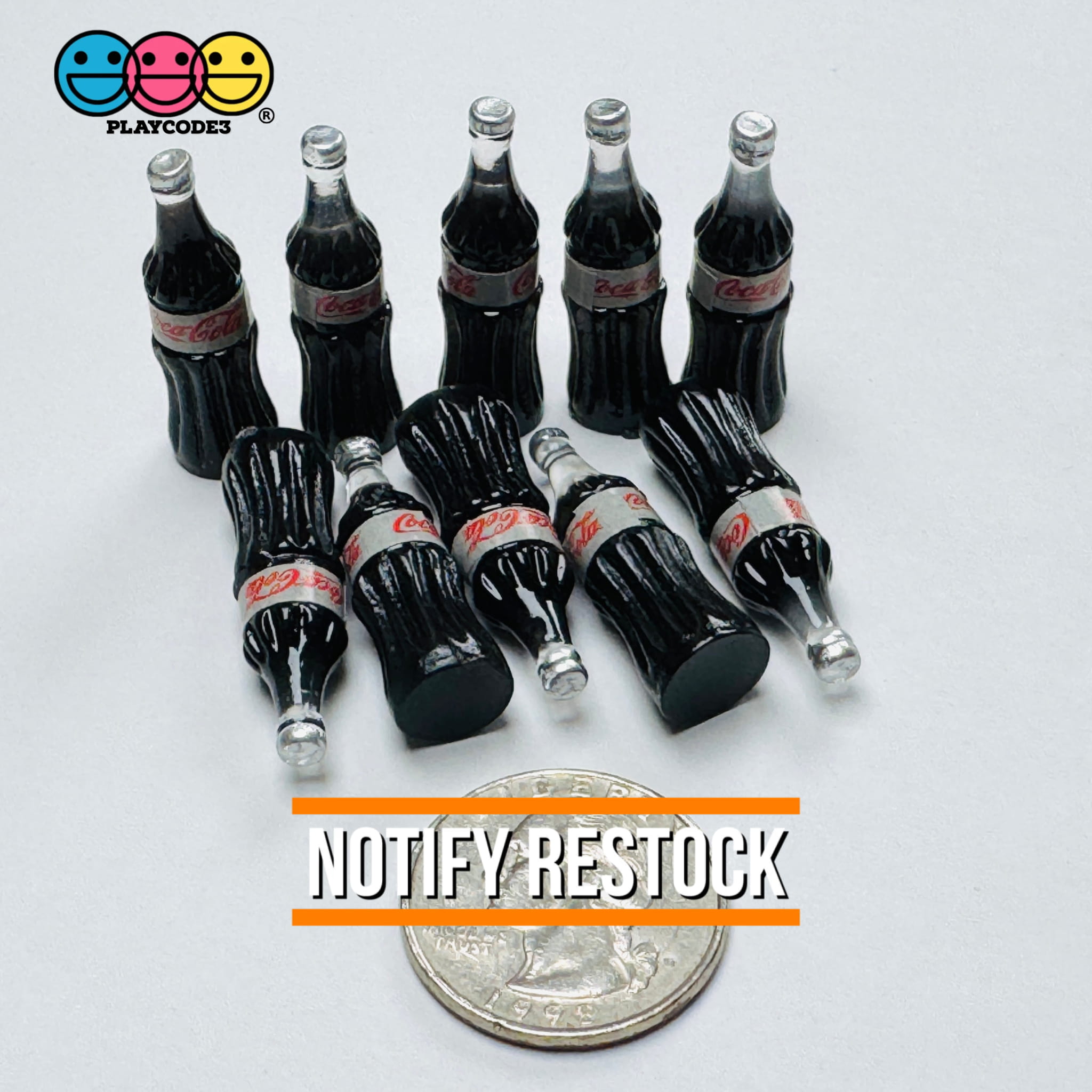 These 3D faux resin diet soda bottle cabochons capture the iconic glass-bottle look with a fun miniature twist! Perfect for slime supplies, fake bake creations, decoden projects, and playful craft designs. Their shiny black and silver detail makes them stand out in any craft. 10 pcs set.