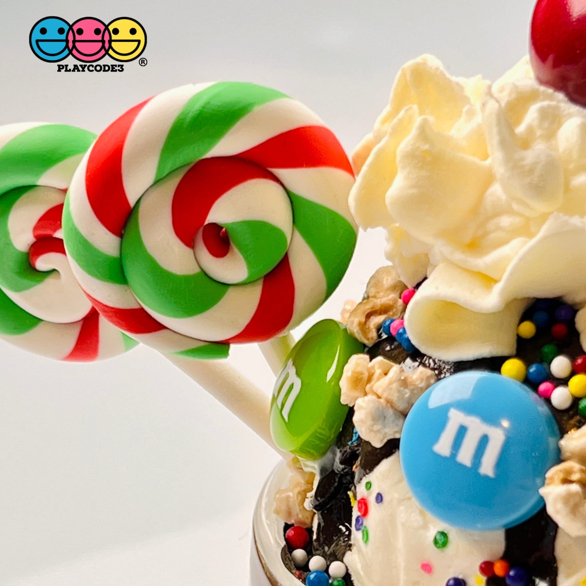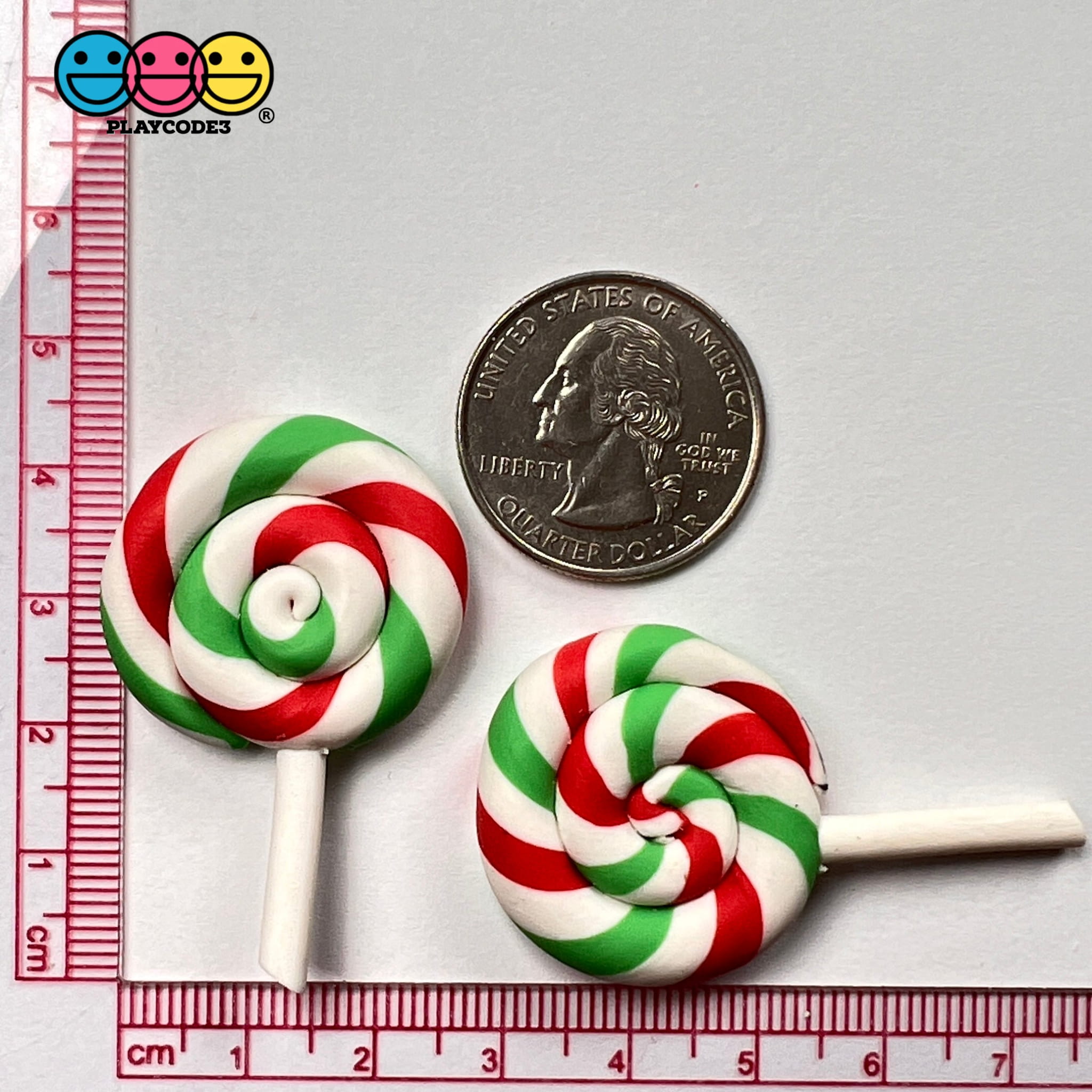 These are Lollipop Peppermint Red Green Swirl Fake Food Charm Lollipops Resin Fake Bake Cabochons (10 pieces in bag). These are really great fake lollipop peppermint swirl of red, white and green. NOTE: The lollipop stick size varies because these are handmade. Great for the Christmas Holiday creation! Add this to your collection of lollipop charms today.