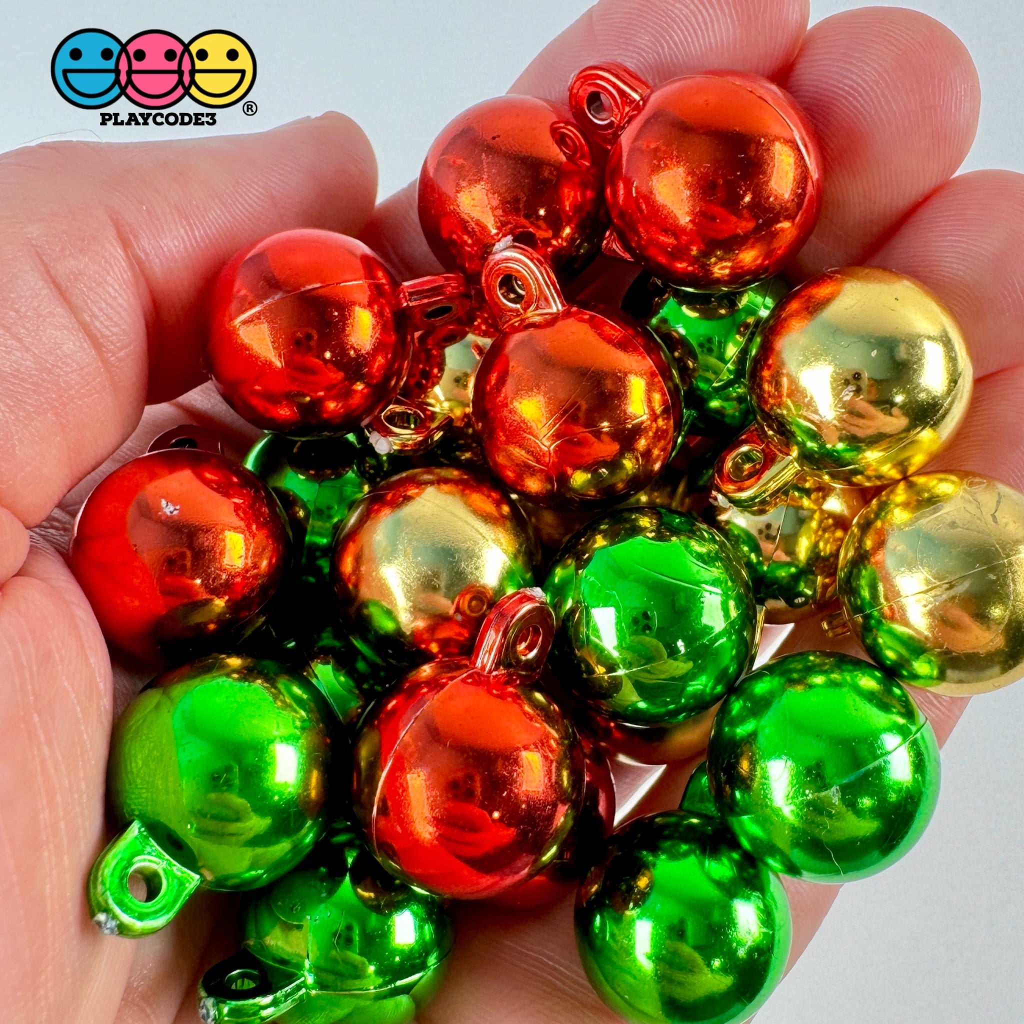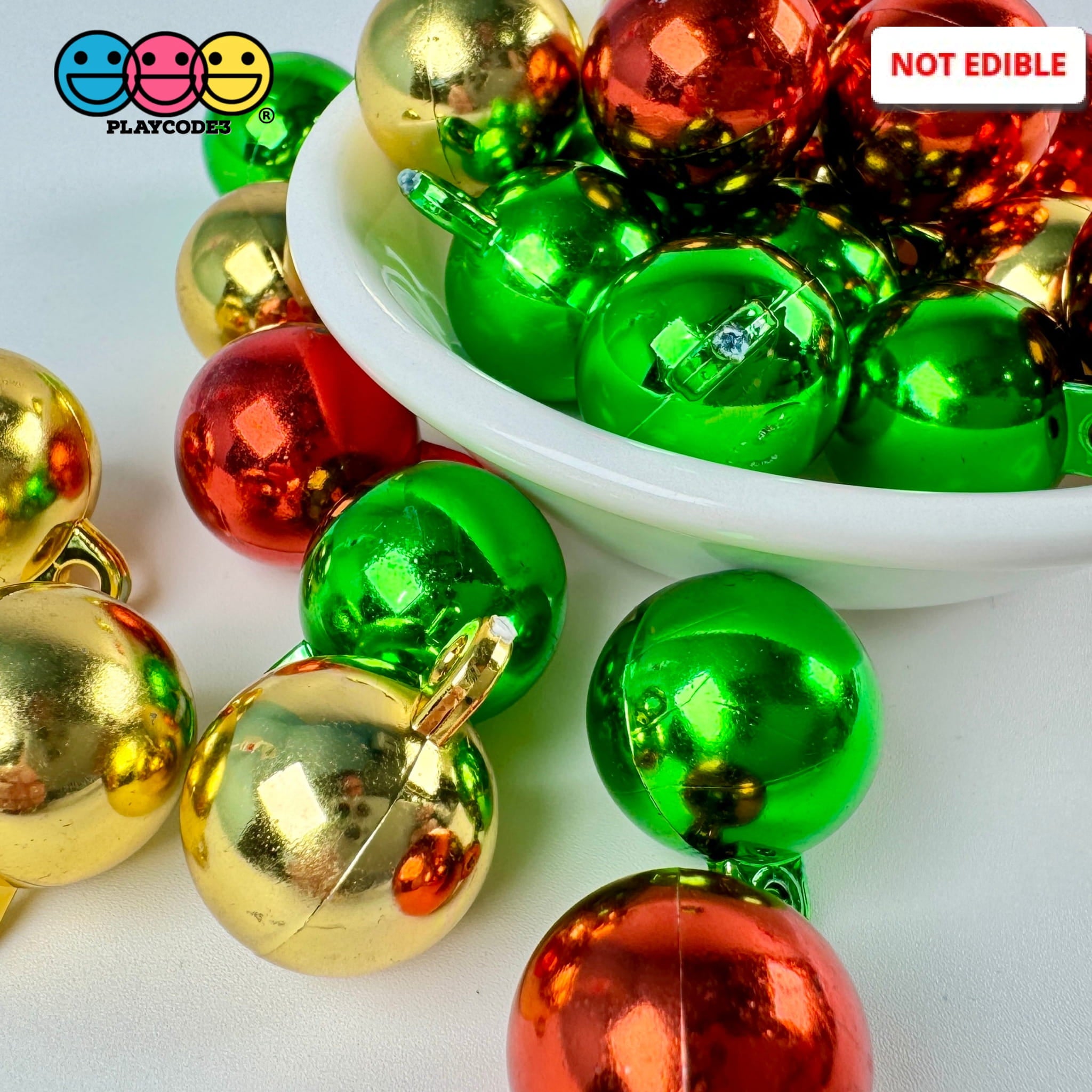 Gleaming Trio Miniature Christmas Ornaments - Mirror - Finish Holiday Cabochon Charms 12 Pcs Charm