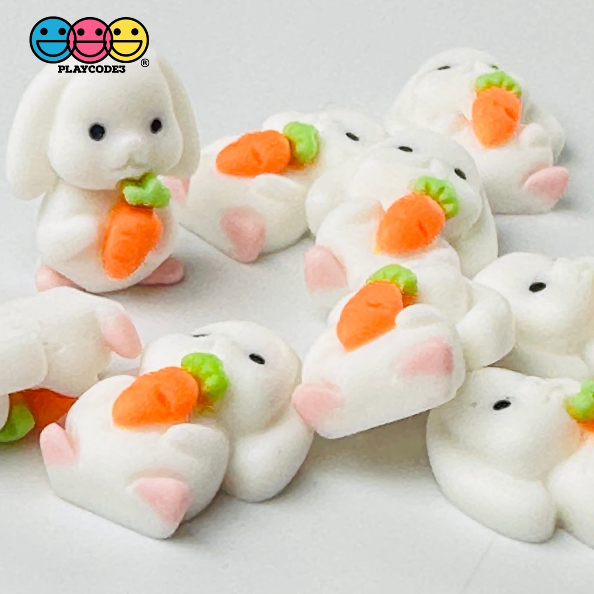 Mini Rabbit Holding Carrots Easter Kawaii Charm Flat Back Cabochons Decoden 10 Pcs Playcode3 Llc